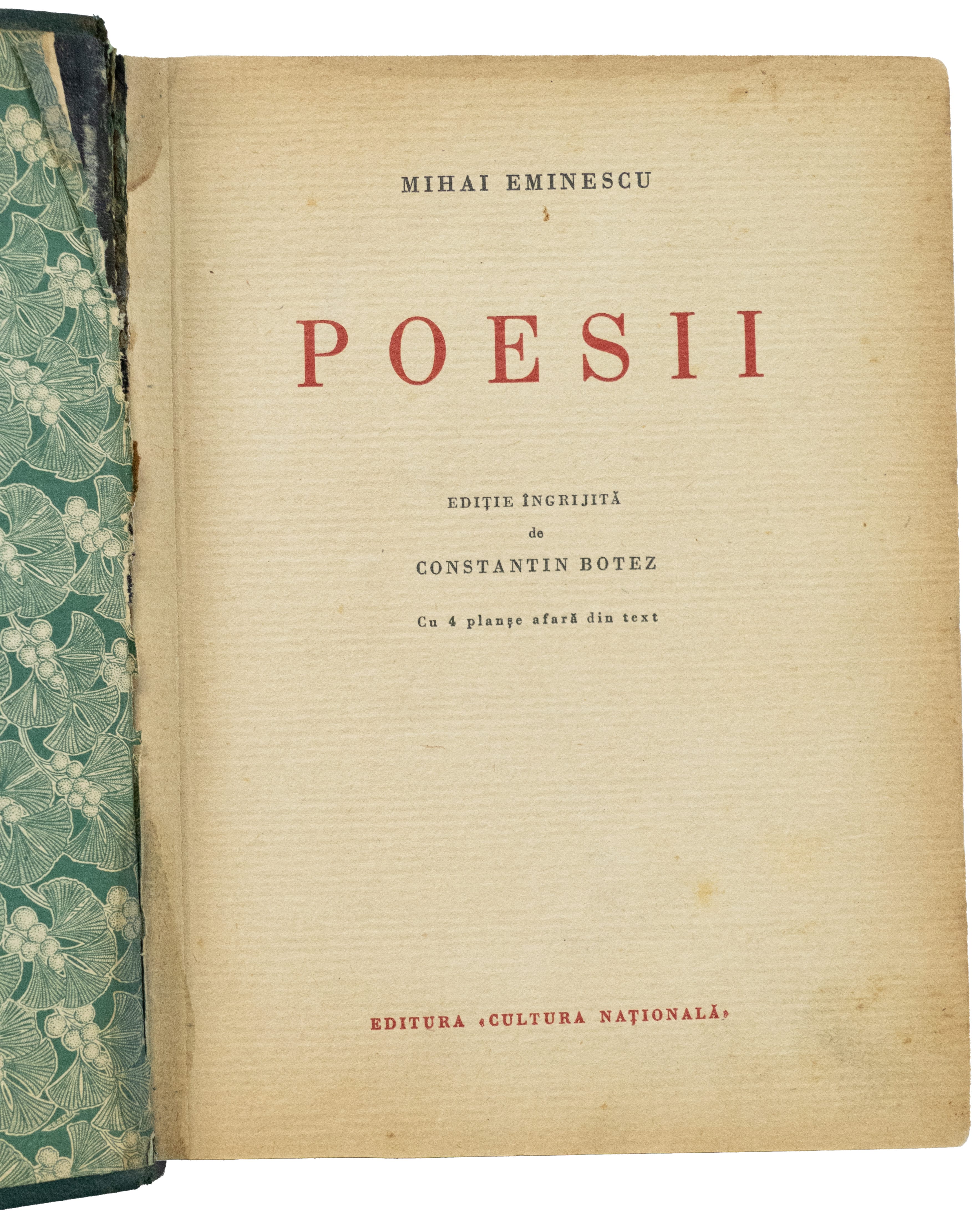 11.12 Mihai Eminescu "Poesii", Ediție ingrijită de Constantin Botez, cu patru planșe afară din text, Editura Cultura Națională