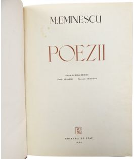 11.01 M. Eminescu "Poezii", prefață Mihai Beniuc, planșe de Perahim, Editura de Stat, 1950, volum omagial la 100 de ani de la nașterea poetului