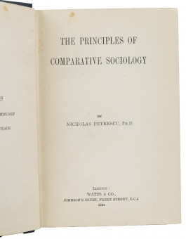 11.15 Nicolae Petrescu "The Principles of Comparative Sociology", Editura Watts &Co, Londra, 1924, cu dedicația și autograful autorului pentru Prof. Dimitrie Gusti