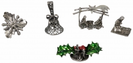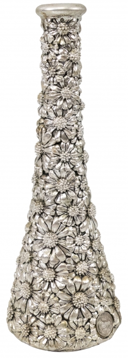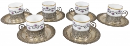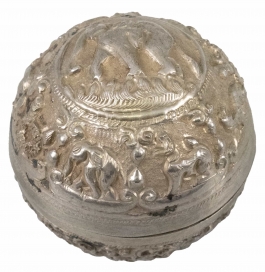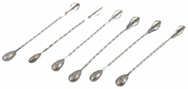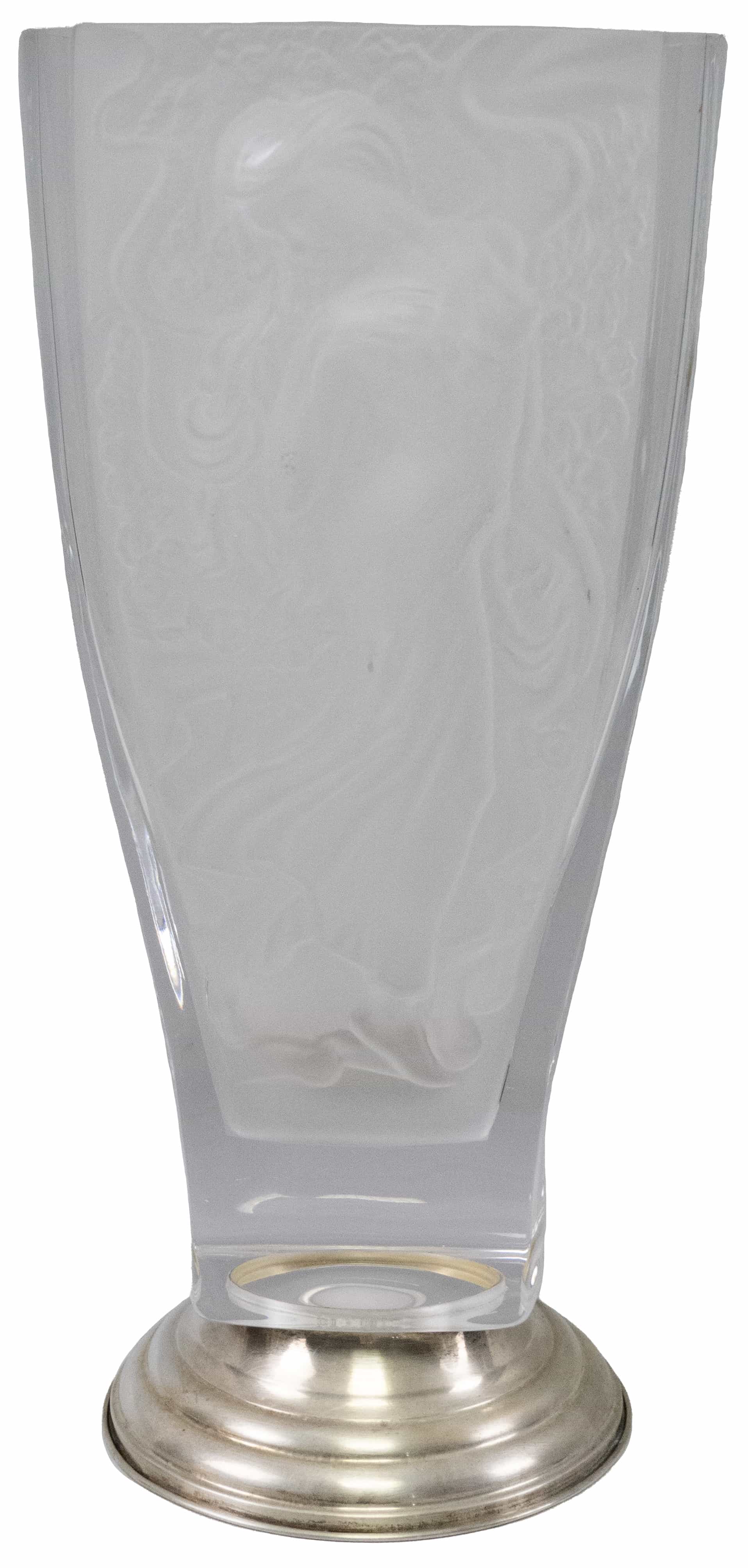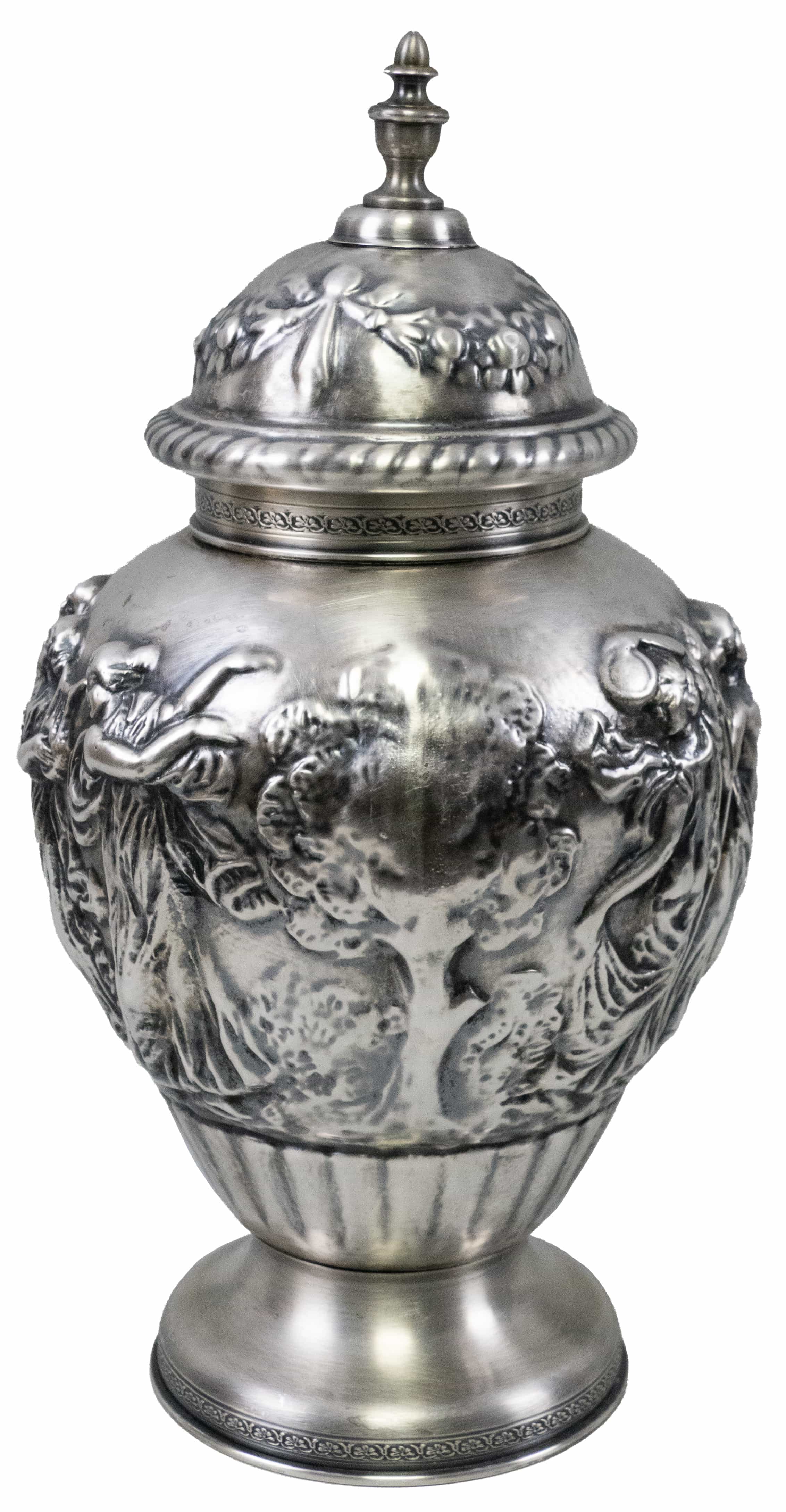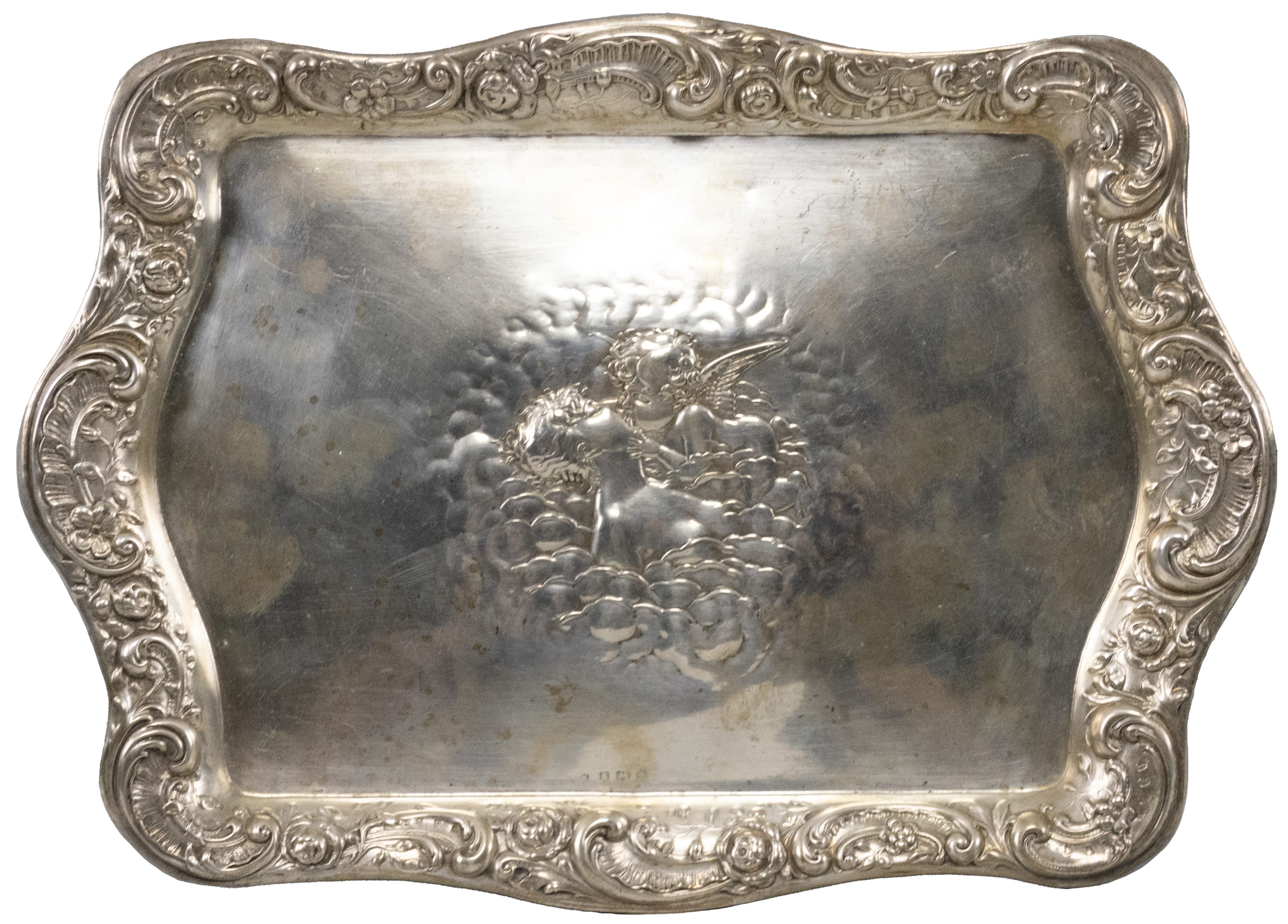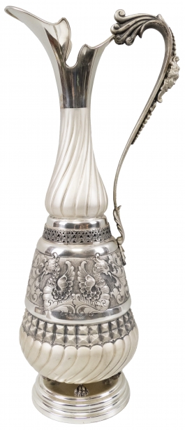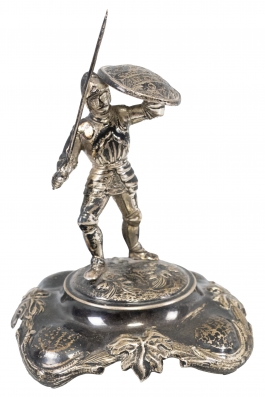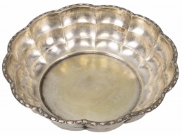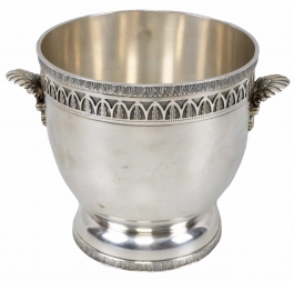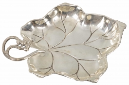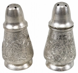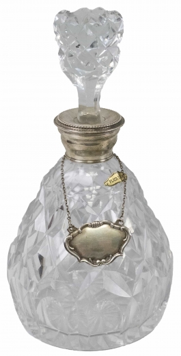 04.39 Vas pentru muștar, două solnițe și trei lingurițe, argint 925 și 800 marcat, traforat, gravat, monogramă M, trei recipente din cristal și sticlă, lingurițe L 11/7.2/7cm, vas muștar 8.5x8.5cm, solniță 4x3.5cm, brut 154.78g, Italia, Anglia, mici defecte |