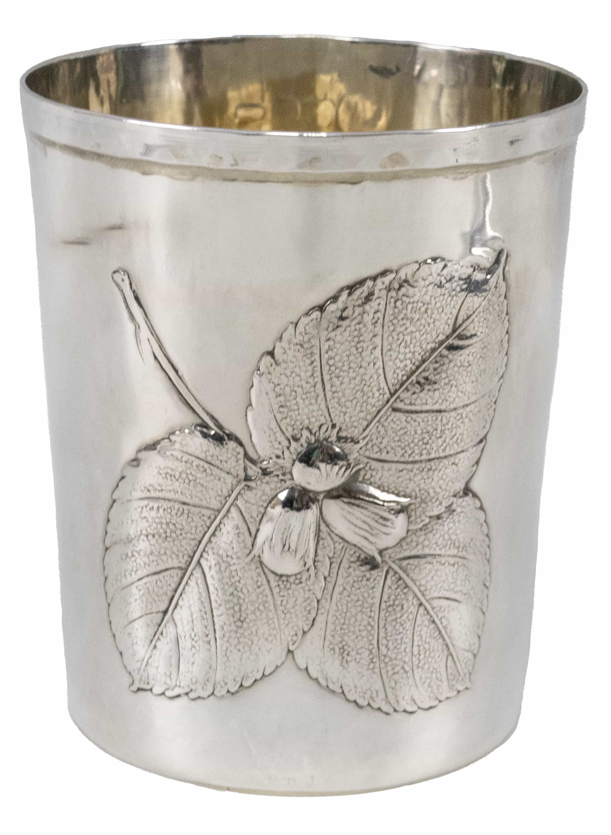04.08 Pahar, pentru purificare apei, argint 925 marcat, aurit parțial, repousse, H 9.2cm, dia.7,9cm, 103.04g, Brandimarte Florența, sec.XX