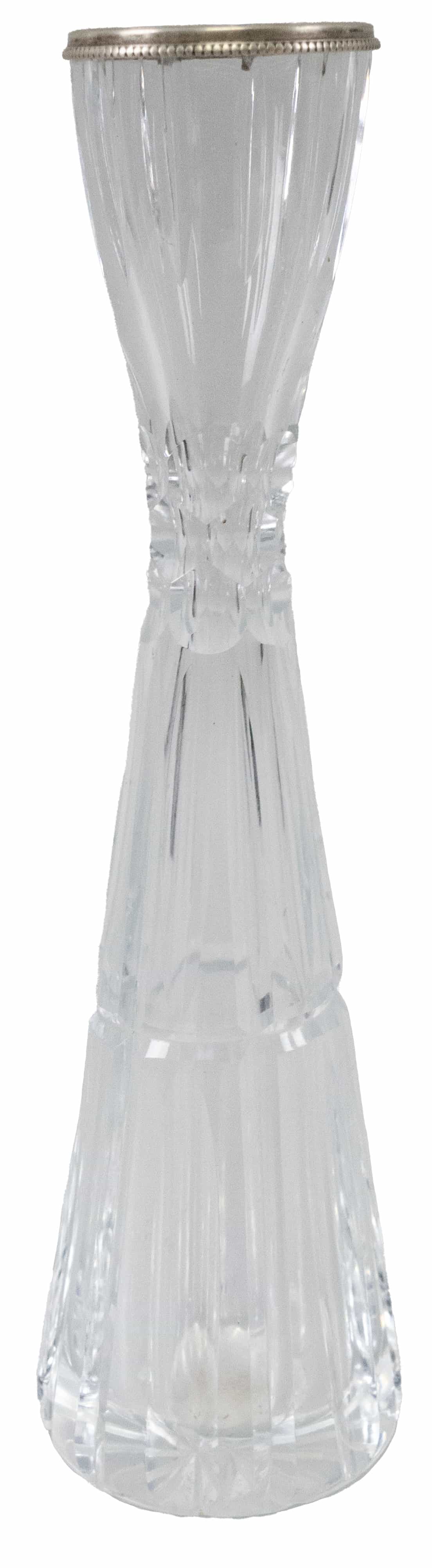 04.17 Solifloră, cristal șlefuit și gravat în manșon argint 800 marcat, H 21.3cm, dia.4,3cm, Italia 1940/1950, mici defecte