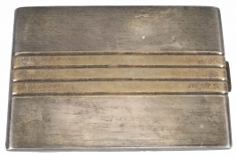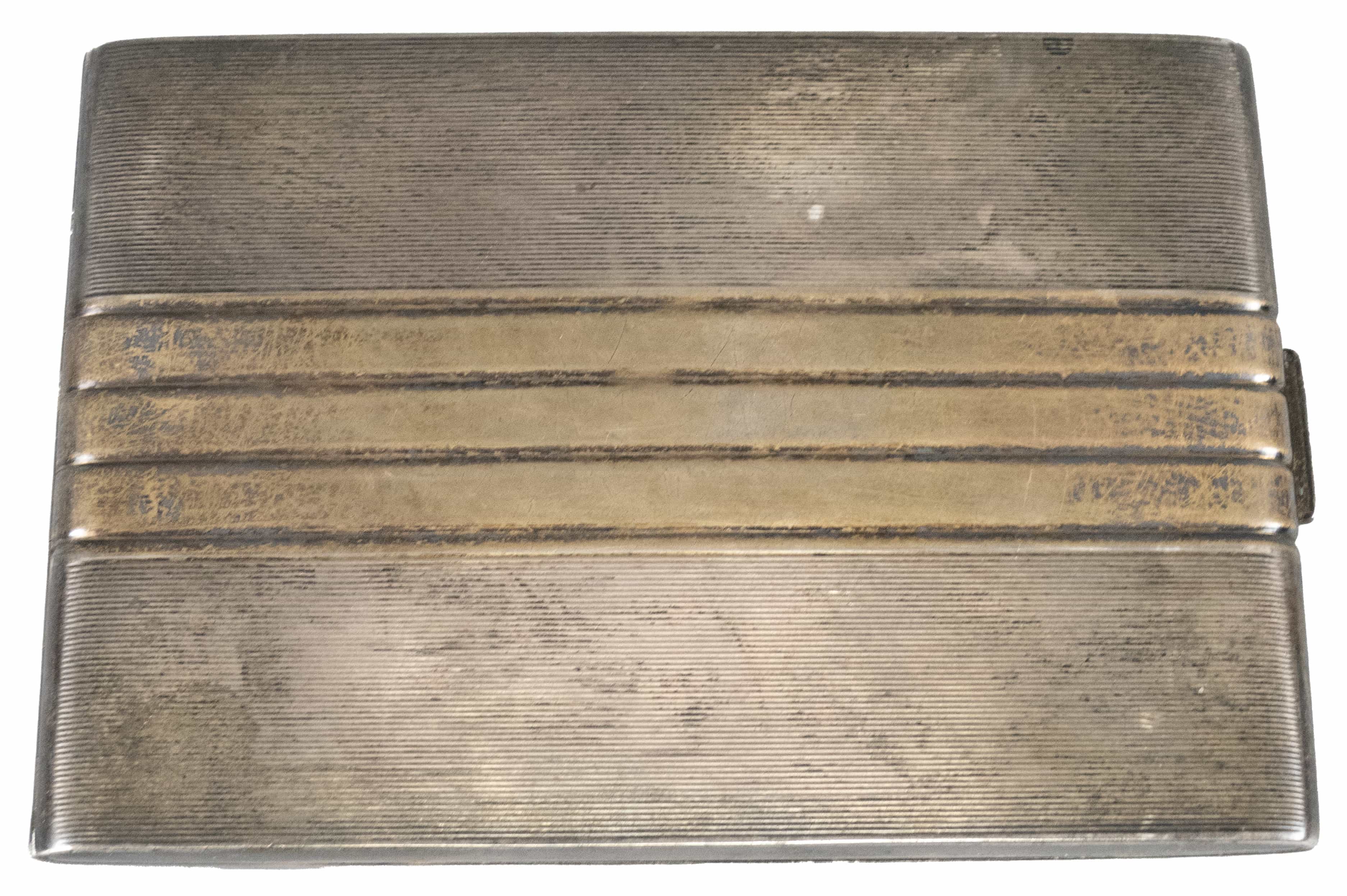 04.24 Portțigaret, argint 875 marcat, aurit parțial, decor liniar, gravat la interior cu dedicație, 11.5x8cm, brut 119.38g, atelier românesc, poansaon activ din 1955, mici defecte