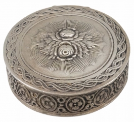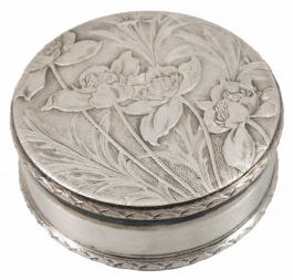 04.06 Casetă circulară cu capac, stil Art Nouveau, dia.5,2cm, H 2.3cm, 35.48g, Franța cca.1900