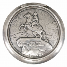 04.09 Pudrieră circulară cu capac, argint 875 marcat, dia.6,8cm, brut 62.52g, URSS cca.1960, mici defecte