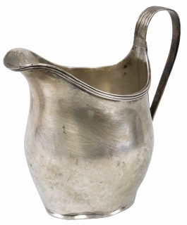04.15 Cană pentru lapte, argint 925 marcat, decor liniar, H 12cm, 135.18g, Anglia, Londra cca.1900, poansoane ilizibile, deformări