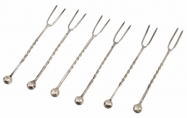 04.18 Șase furculițe pentru aperitive, argint 800 marcat, torsadat, L 9.5cm, brut 24.80g, Italia cca.1950