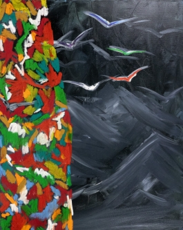 ulei pe pânză, 60x60cm, semnat mijloc jos cu brun, datat 2020