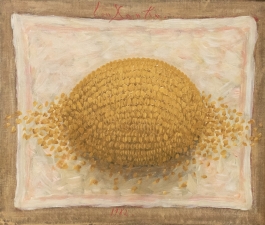 06.04 Constantin Pacea (n.1957) - "Semințe", ulei pe pânză, 23x27cm, semnat mijloc sus cu roșu, datat 1982, provine din colecția Marina Dimitropoulos