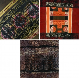06.02 Daniela Frumușeanu (n.1961) - "Crestături în lemn, trei panouri decorative", serigrafie pe pânză, 51x51cm fiecare, nesemnat, însemnarea artistului pe spate