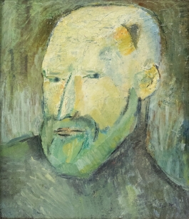 06.03 George Tzipoia (n.1945) - "Portretul imaginar al poetului Paul Verlaine", ulei pe carton, 44x38cm, semnat dreapta jos cu albastru, datat (19)70. lucrare este reprodusă în albumul George Tzipoia, Ed.Uranus 2009, pg.57