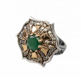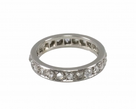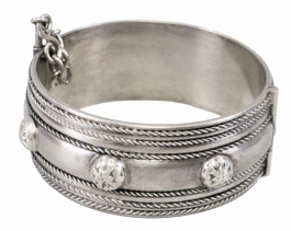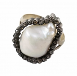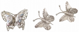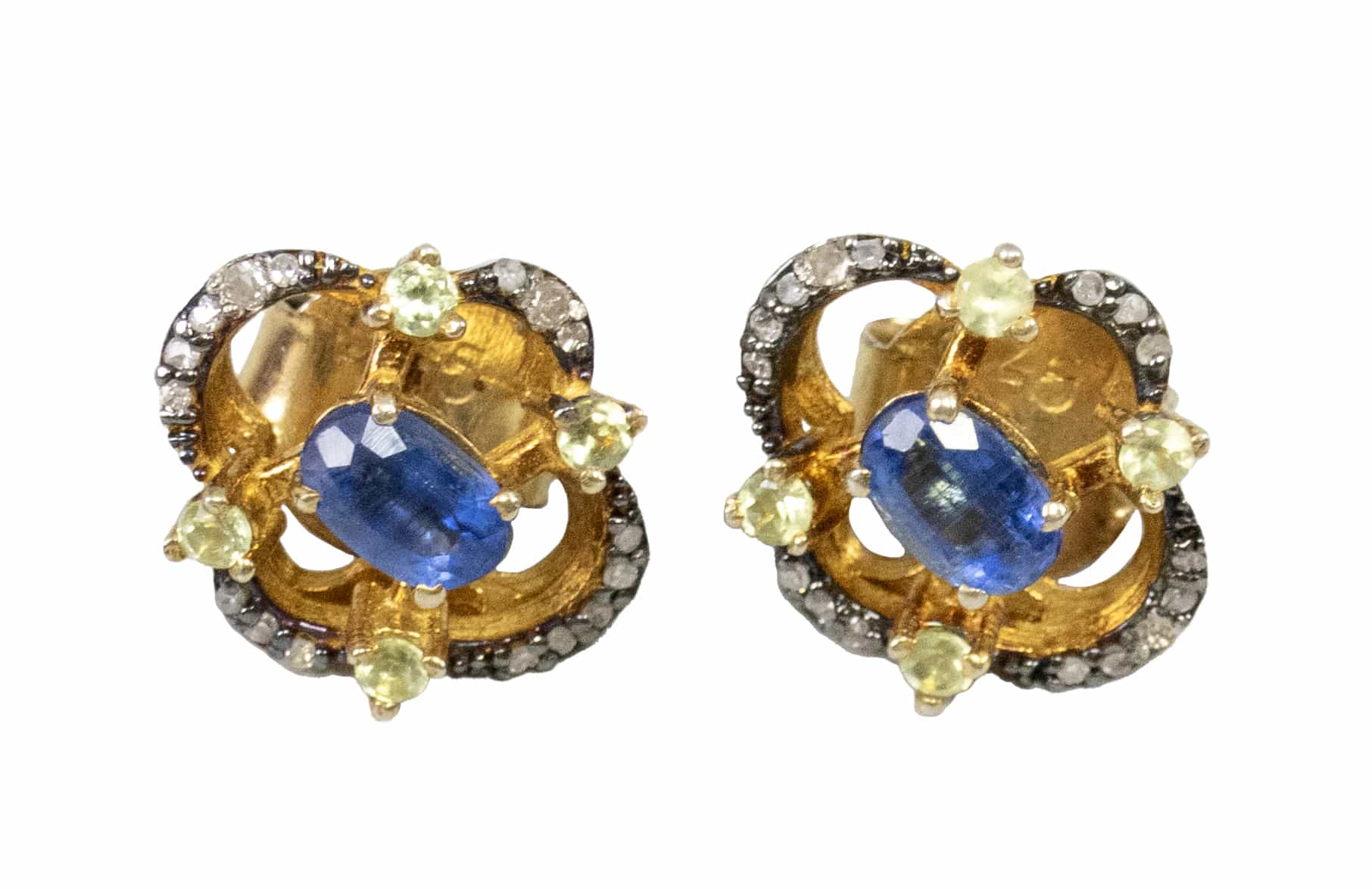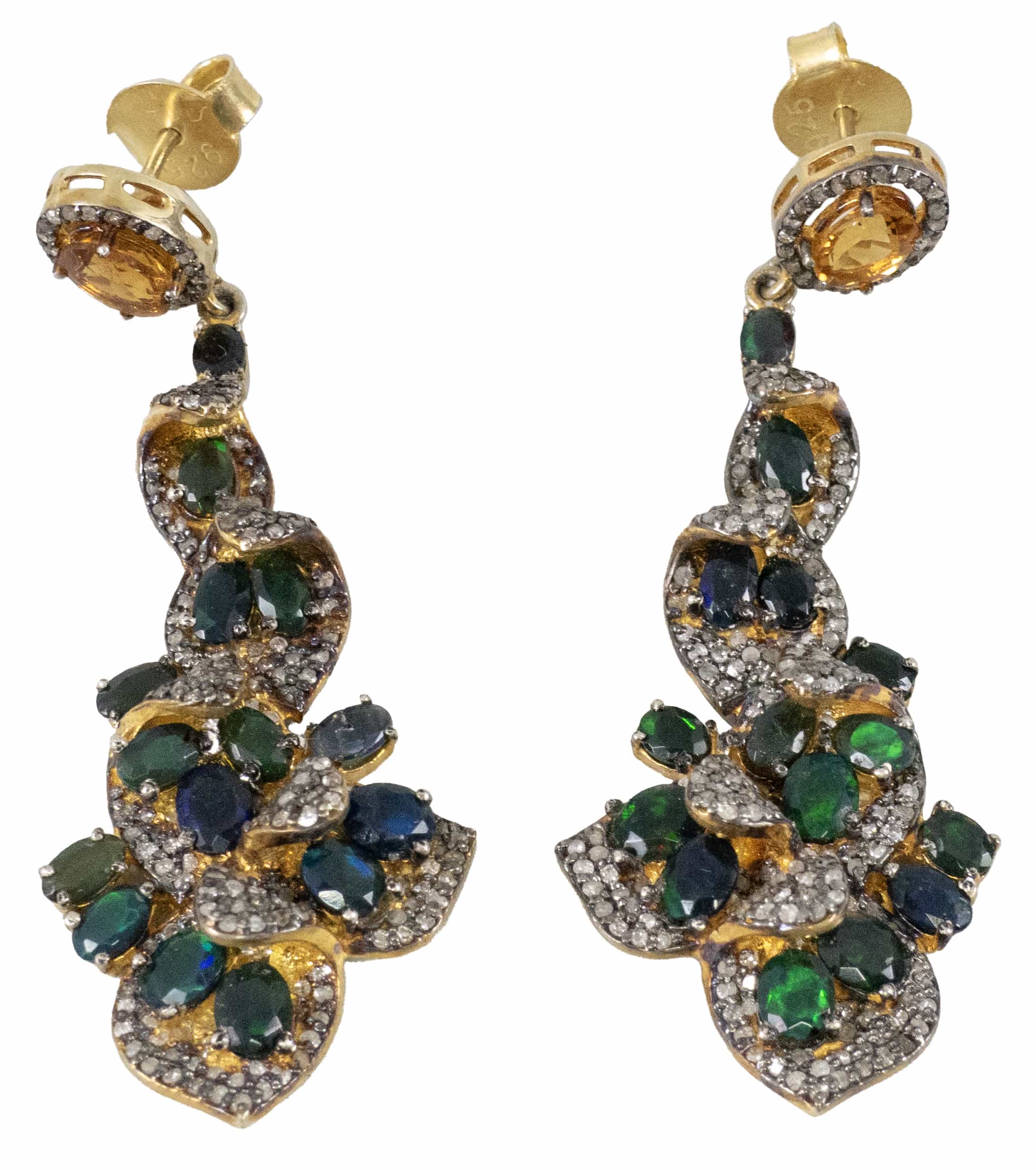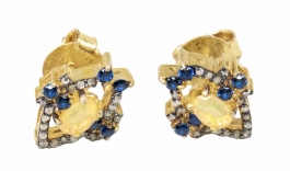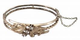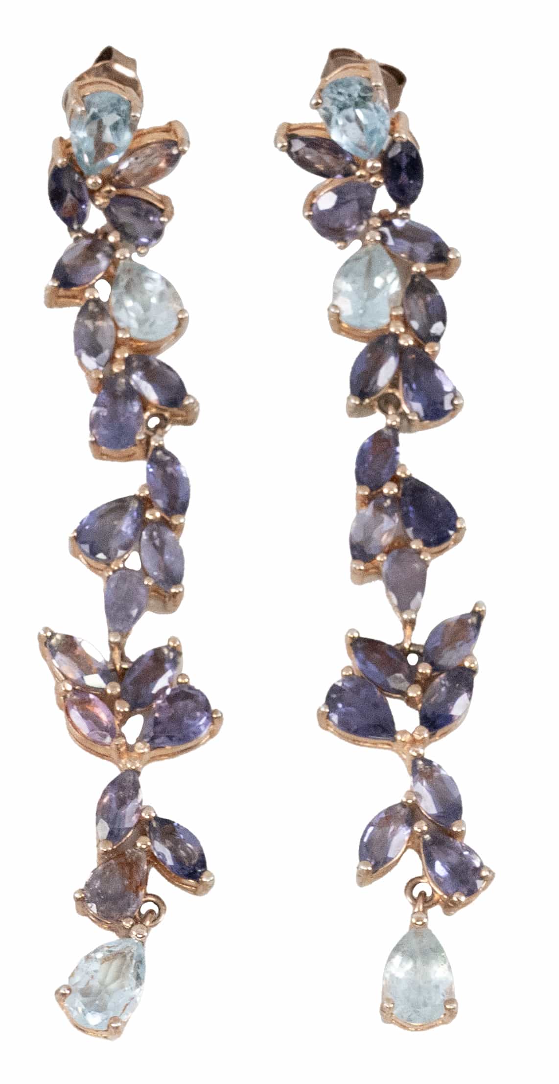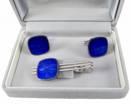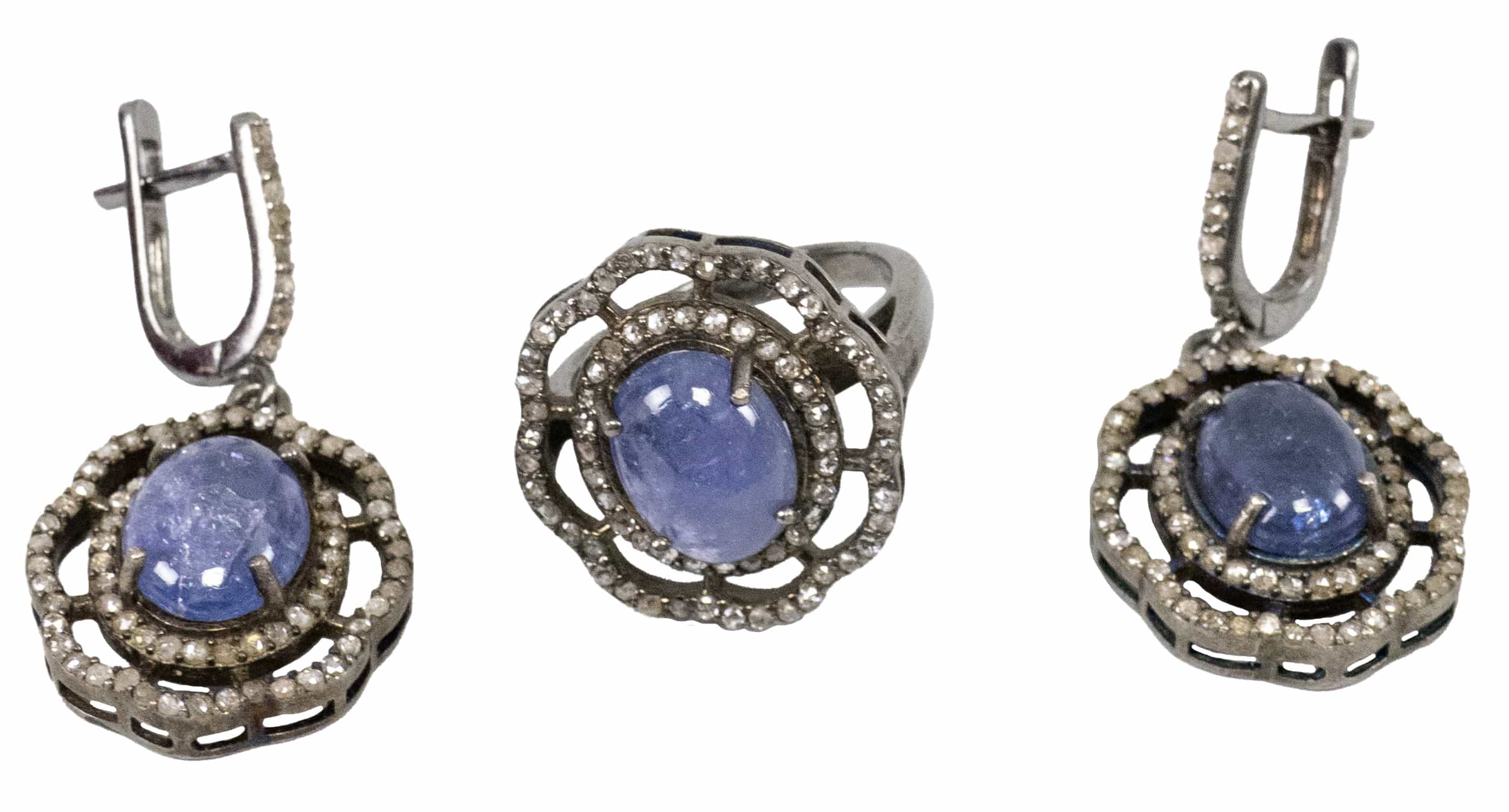 02.06 Inel și cercei, argint 925 marcat, tratat cu rodiu, 3 tanzanite 11x8.8/11x8.5mm, diamante "rose cut" cca.1,00ct, tentă/P2/P3, sistem de prindere tijă/clips, inel circumferință 53.5mm, cercei L 4.3cm, brut 14.47g, mici defecte, determinări în limita monturilor restrictive |