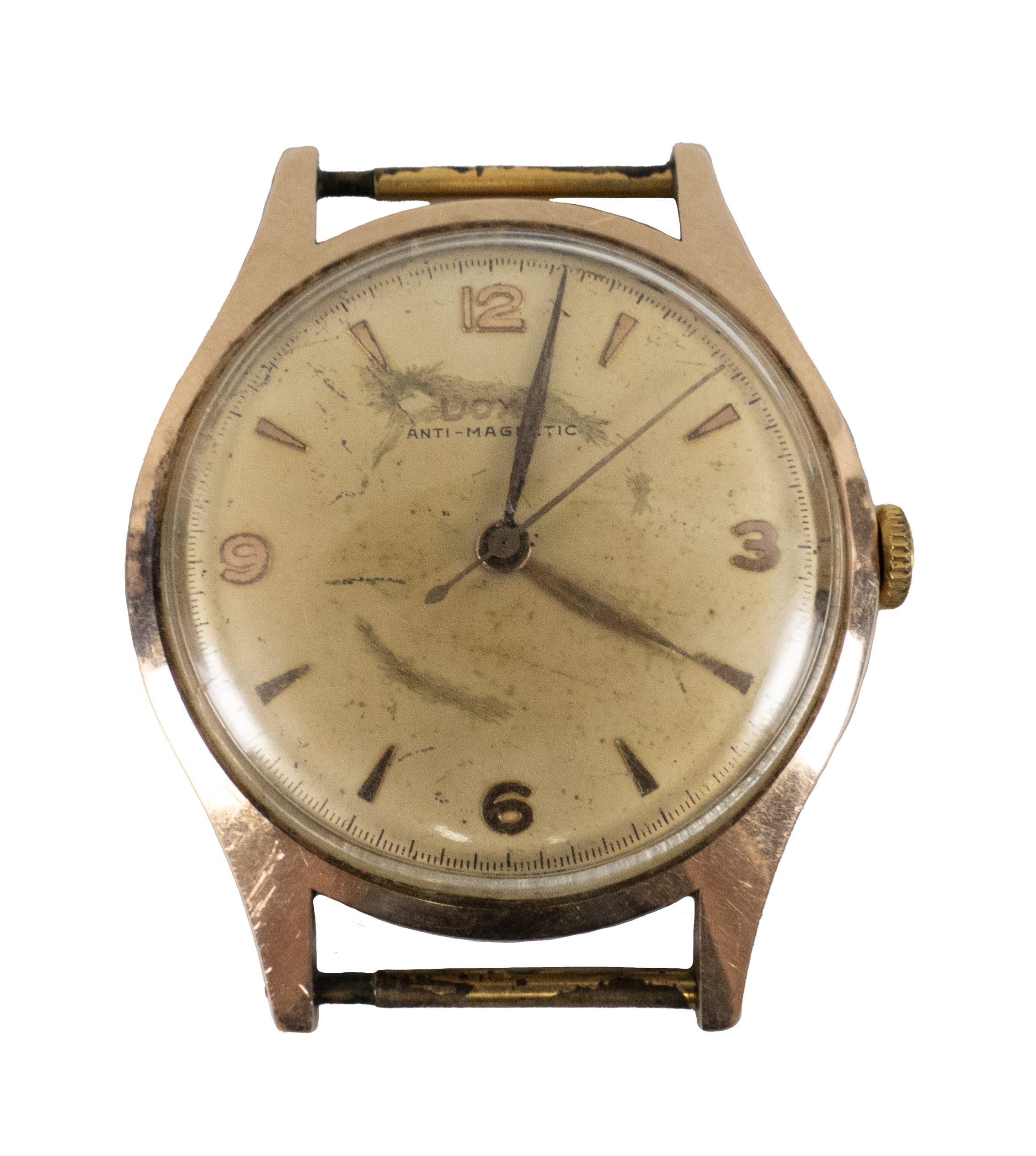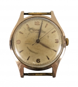 03.03 Ceas de mână Doxa, balans compensat, spiral plat, carcasă și capac aur 14K marcat (telescoape metal comun), sec.XX, defect