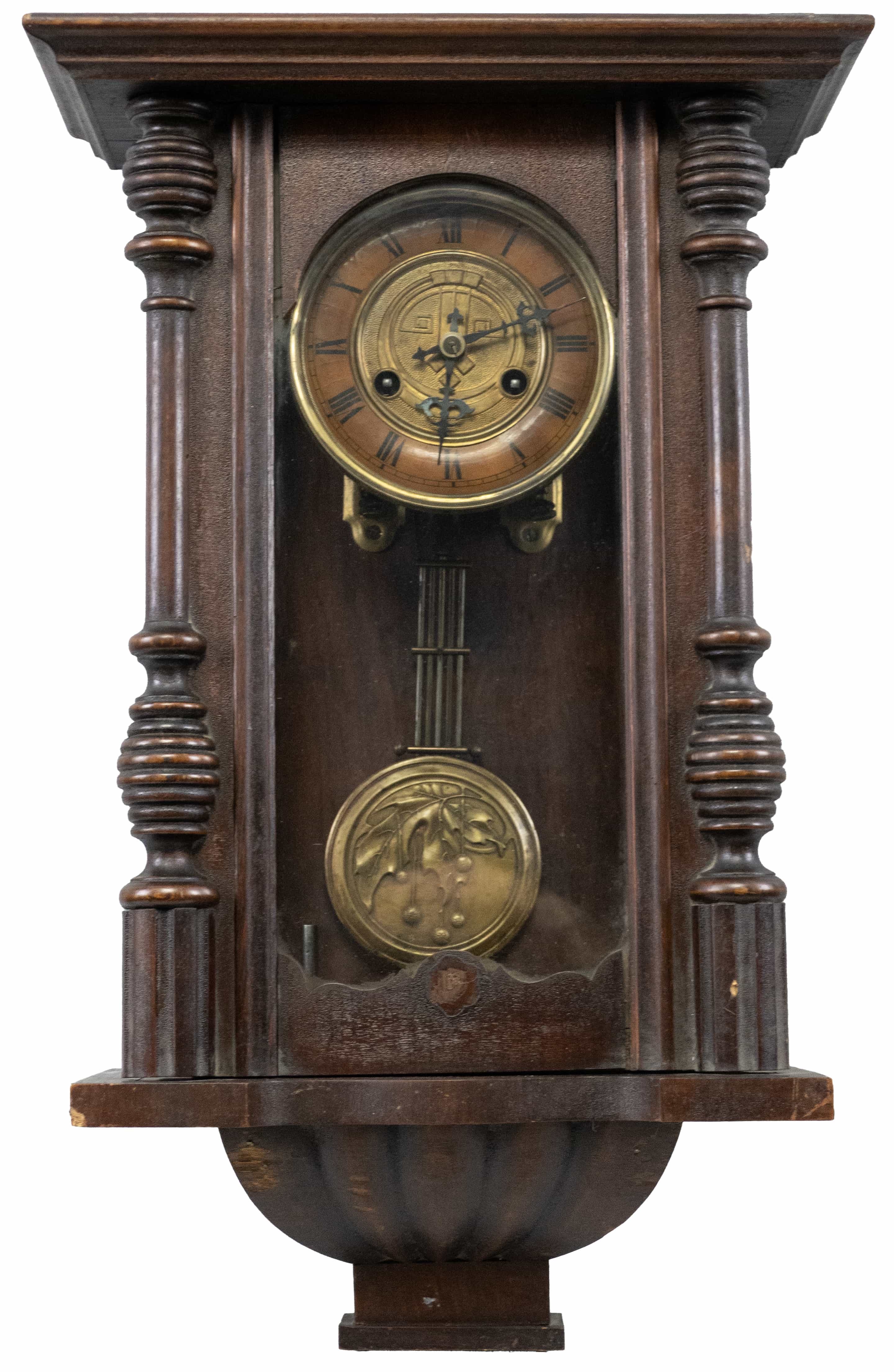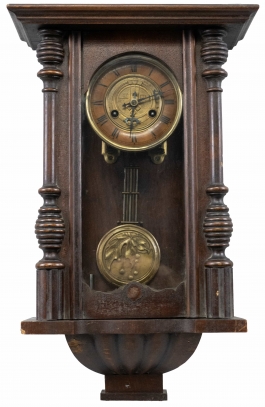 03.03 Pendulă de perete, bate ore și jumătăți pe arc spiral de rezonanță, carcasă lemn, 3 geamuri de sticlă, 1940/1950, necesită revizie