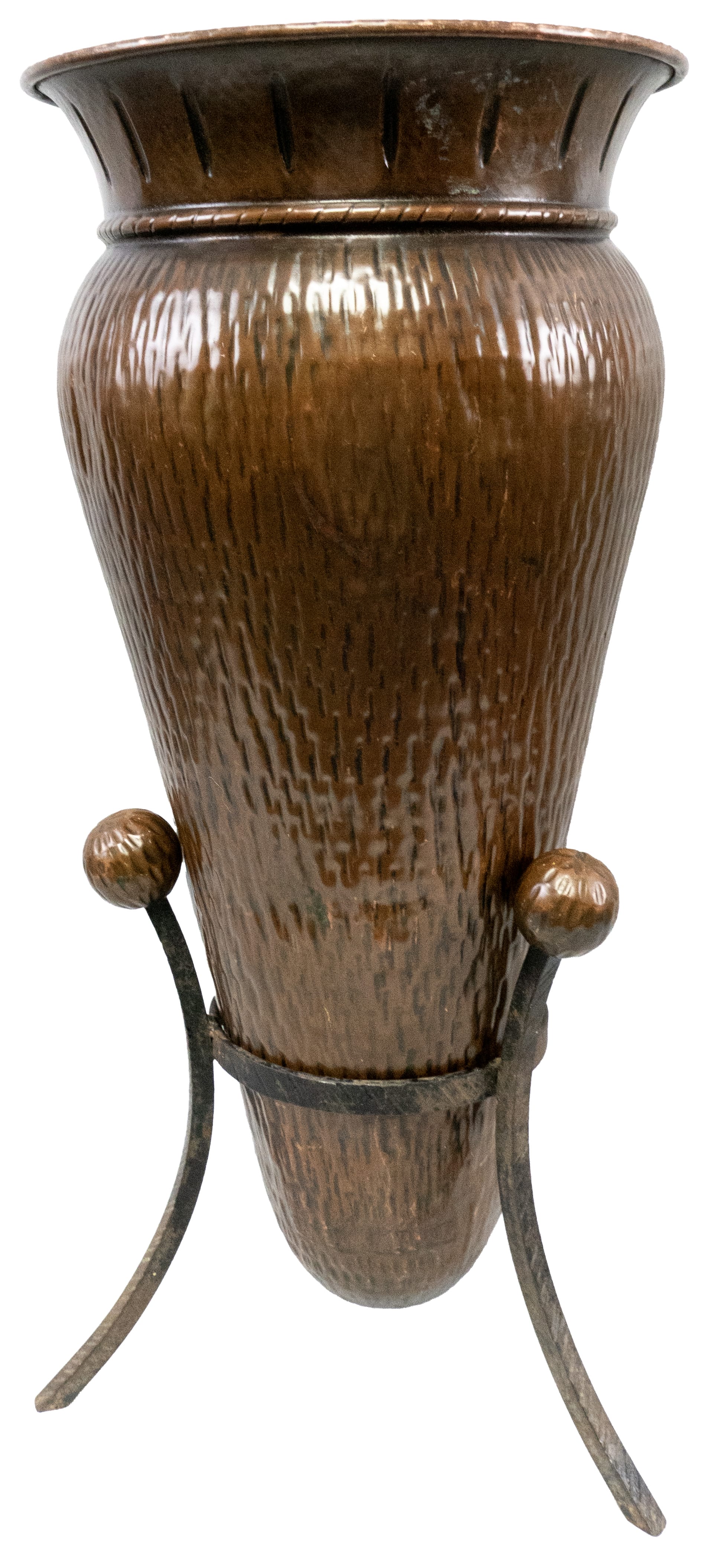01.07 Suport pentru bastoane și umbrele, cupru și fier forjat, H 54.5cm, jum.sec.XX