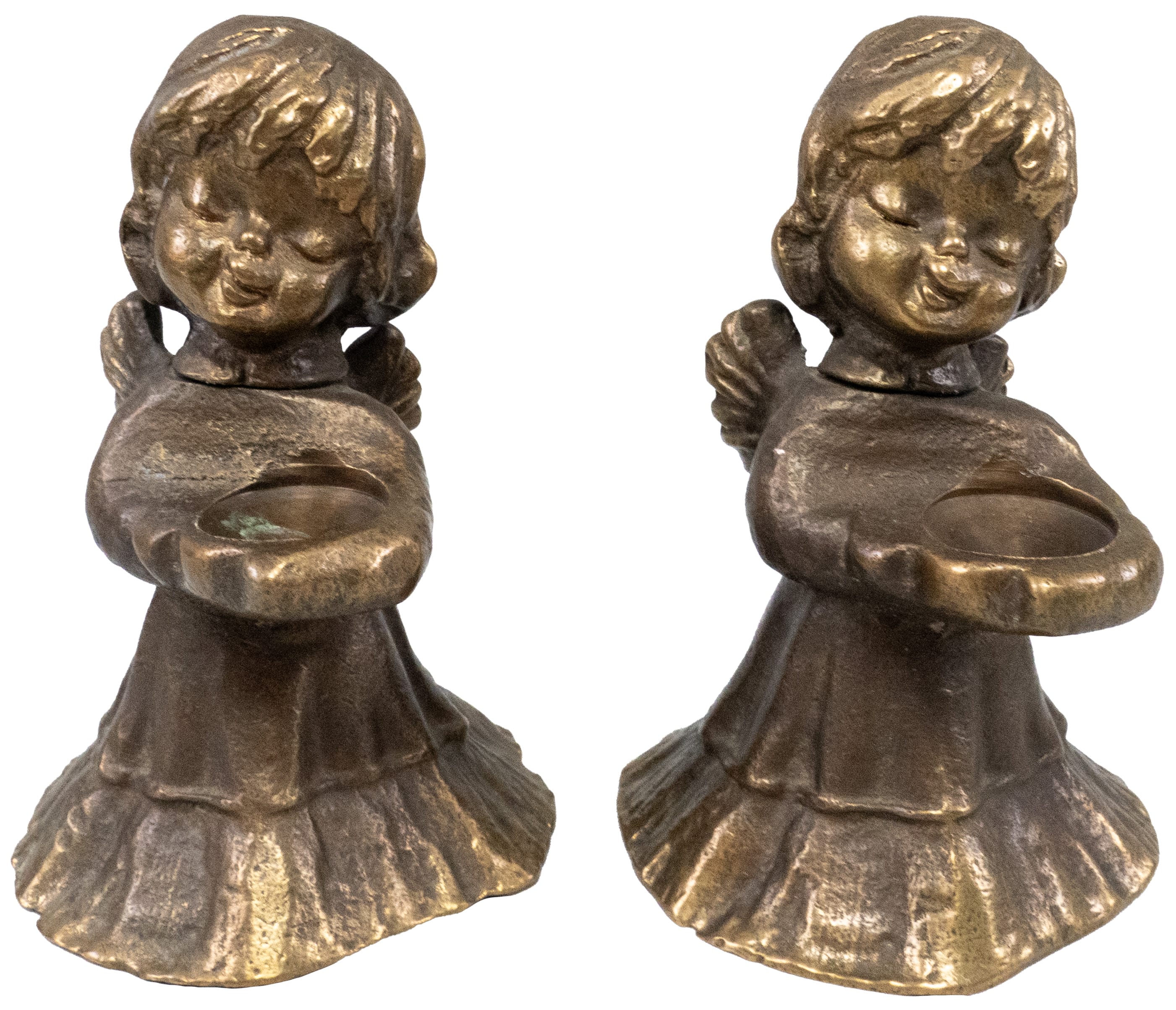01.18 Amorași, suporturi pentru lumânări, bronz, H 15cm, perioada interbelică
