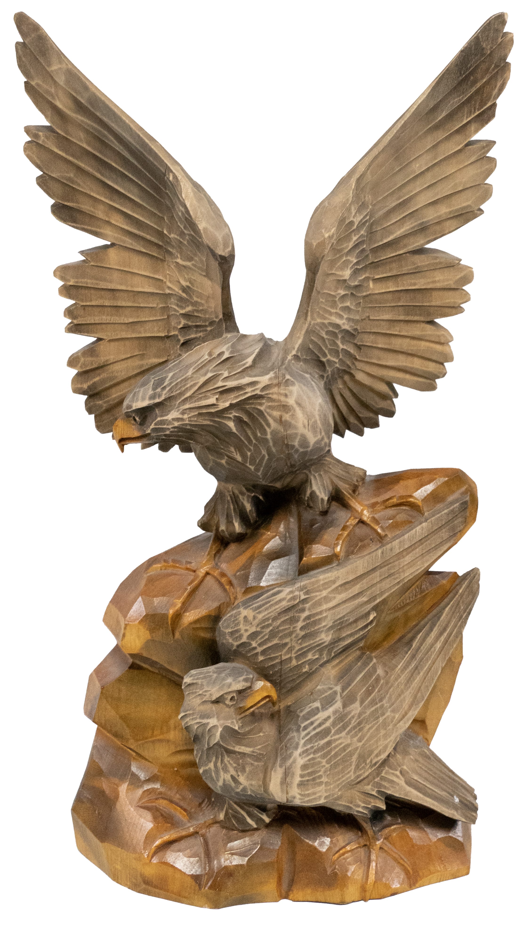 01.25 Vulturi, piesă ornamentală de birou, lemn sculptat, pictat, H 35cm, a II-a jum.sec.XX