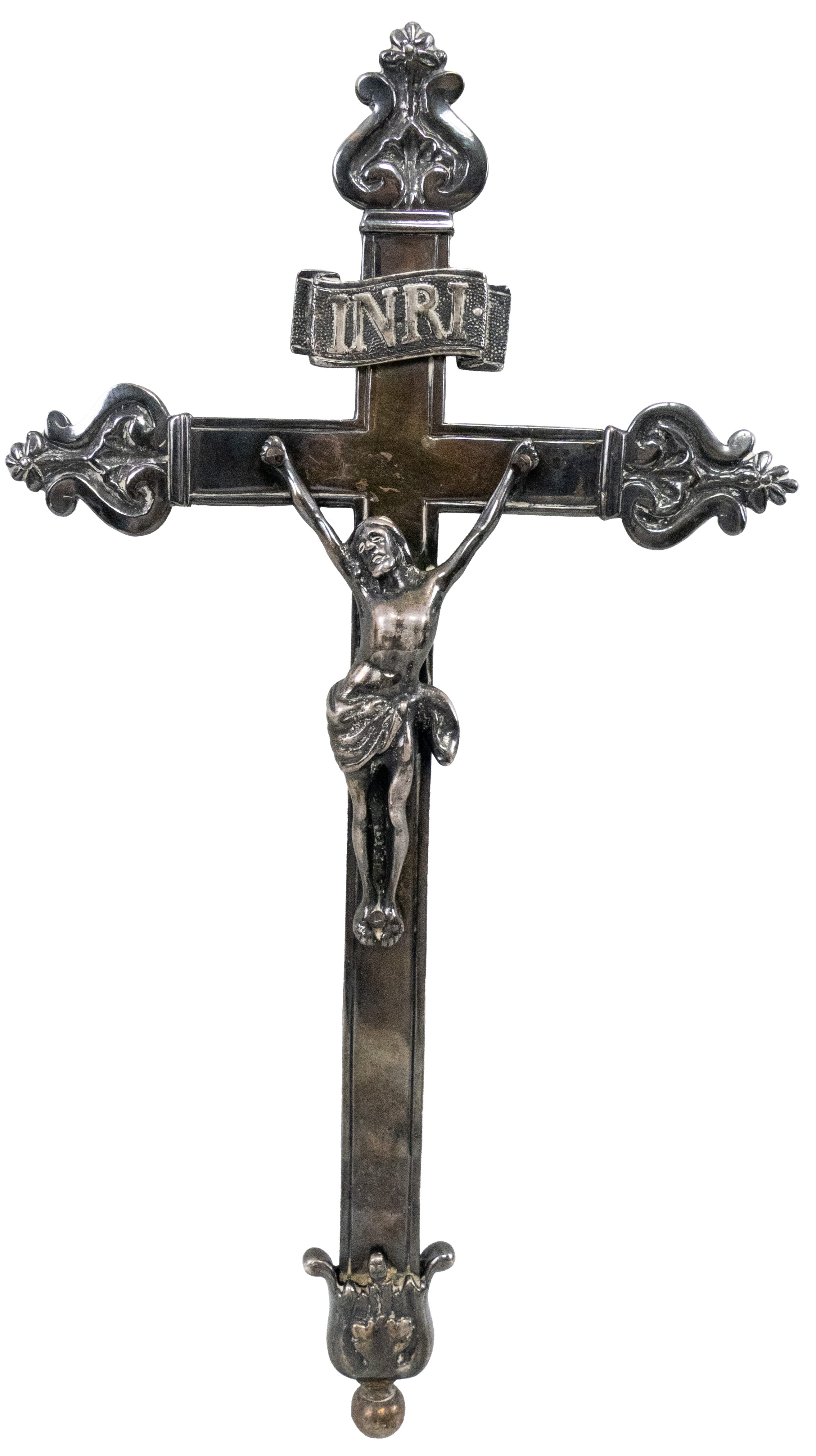 01.37 Crucifix, metal argintat, H 36cm, perioada interbelică