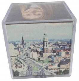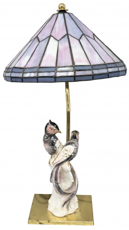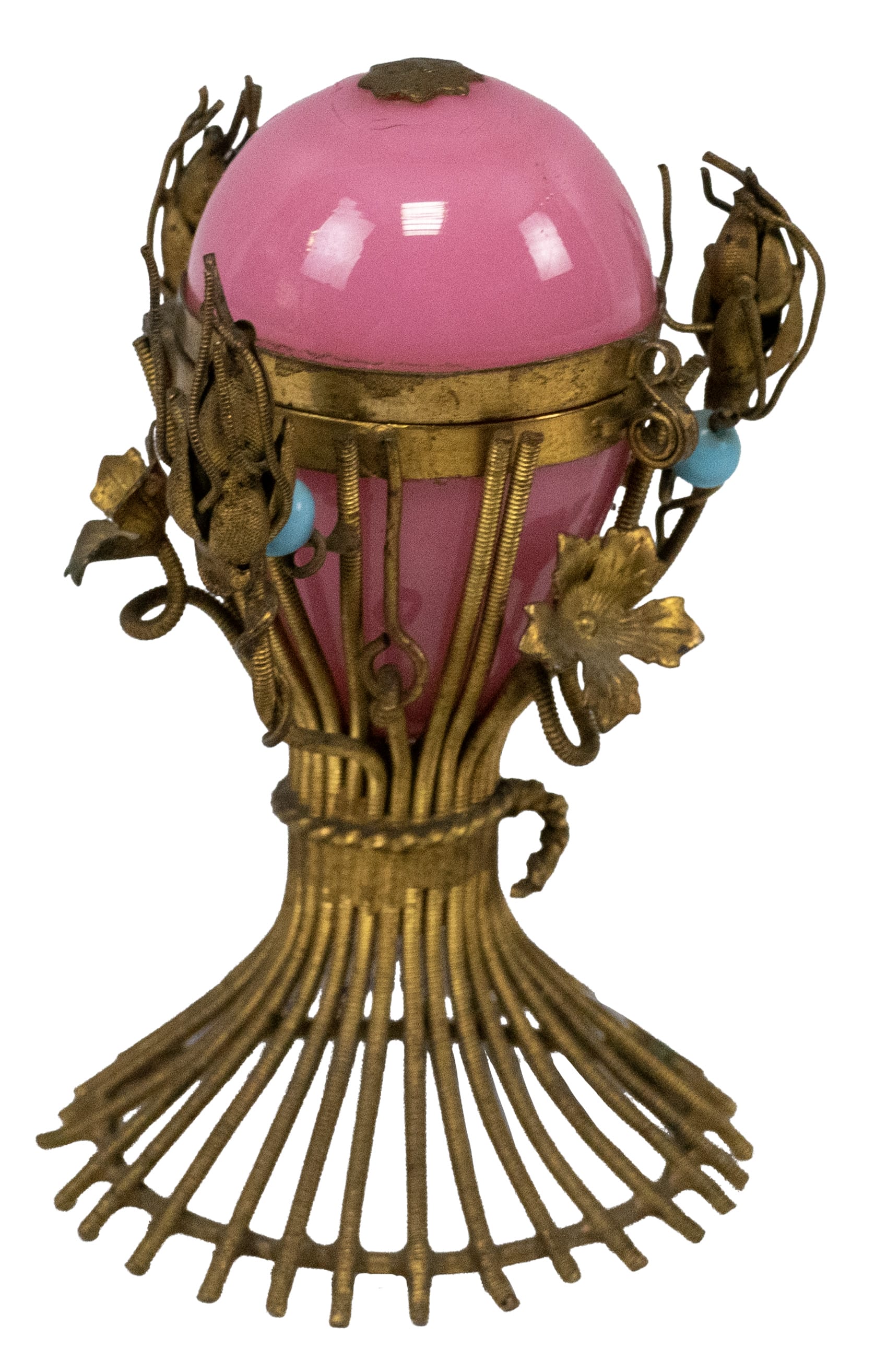 01.06 Suport pentru inel de nuntă, alamă și sticlă colorată, H 9cm, înc.sec.XX