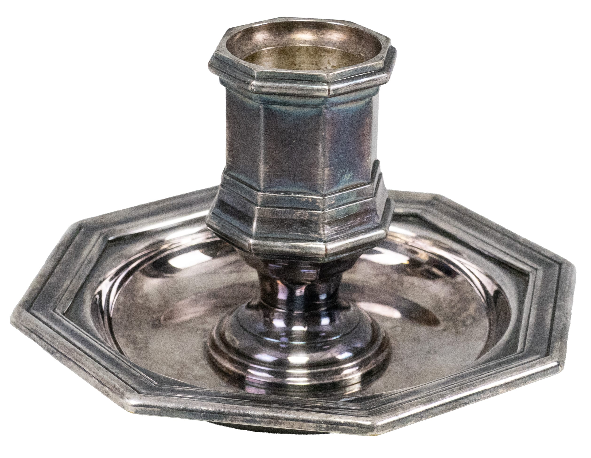01.07 Sfeșnic, metal marcat Christofle, H 6 cm, perioada interbelică