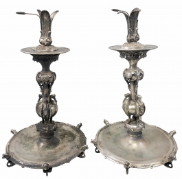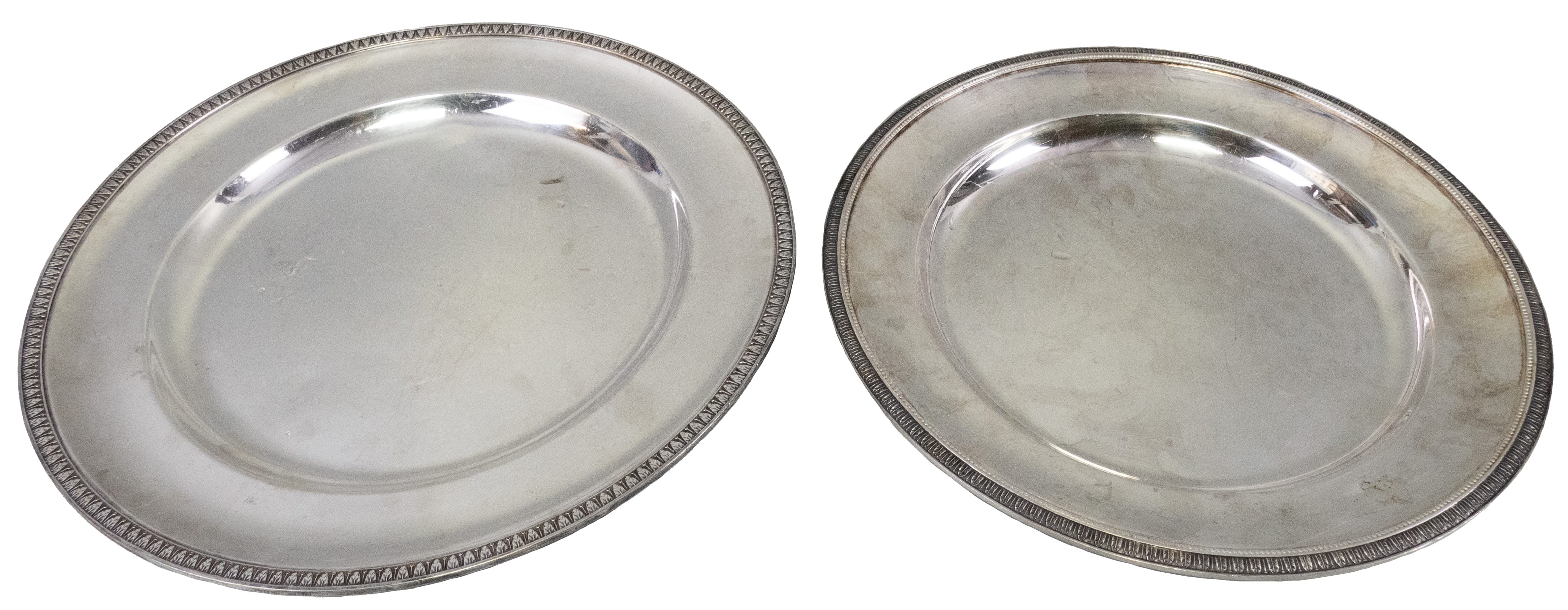 01.08 Două platouri rotunde, elemente Empire, marcate Christofle, dia. 30/33cm, perioada interbelică
