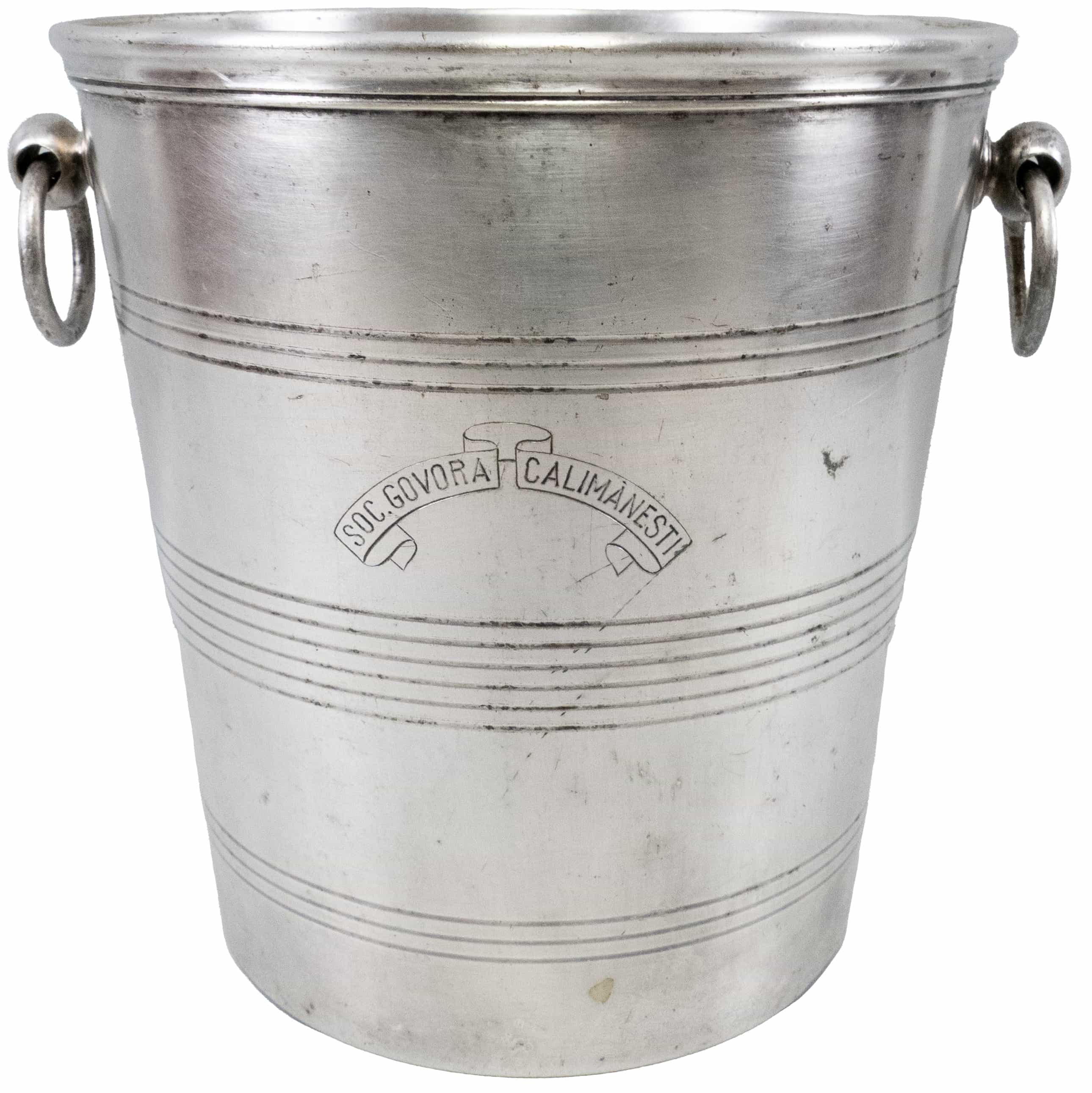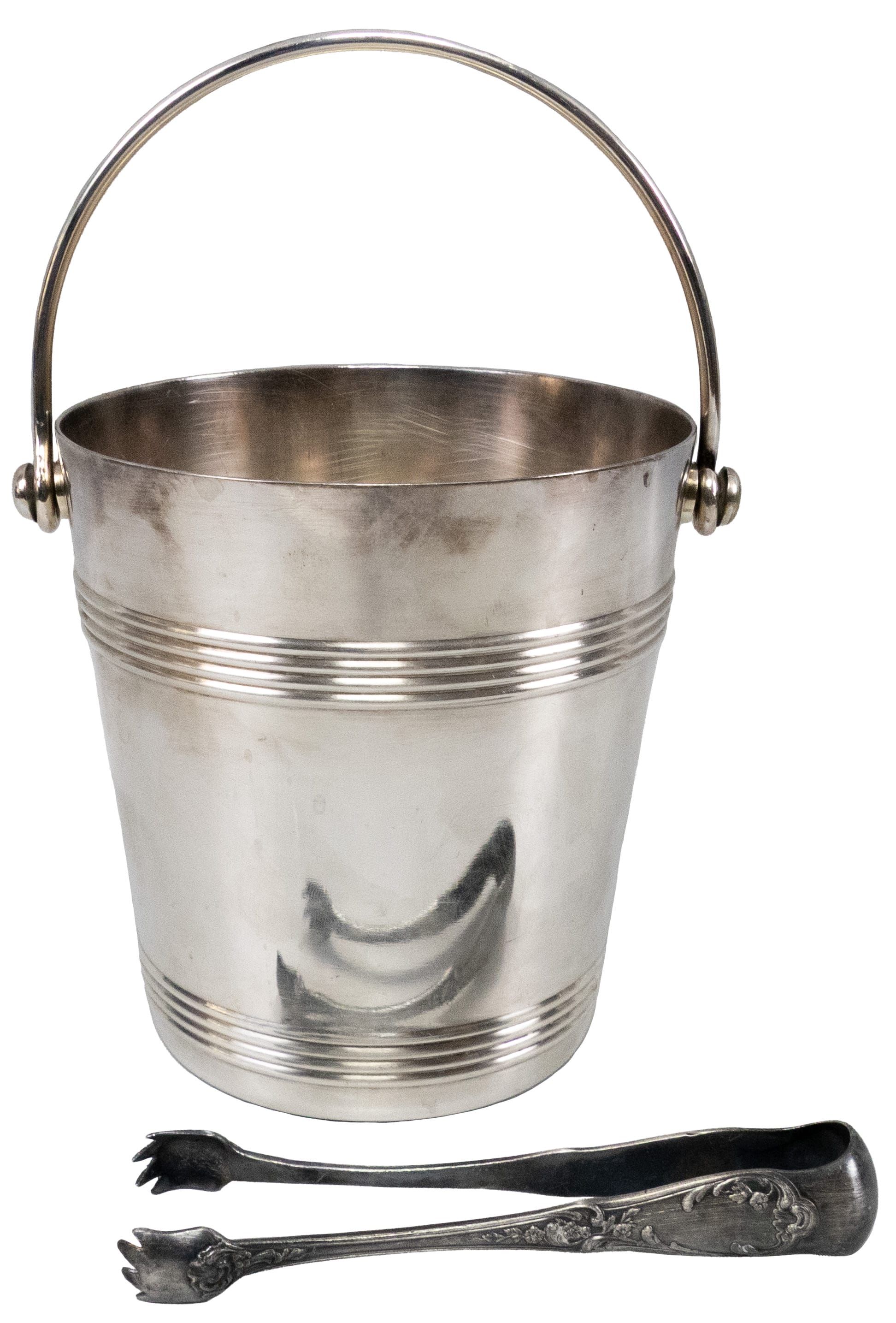 01.09 Vas cu ansă rabatabilă, pentru cuburi de gheță, macat Gallia și clește (marcat), H 13cm, perioada interbelică