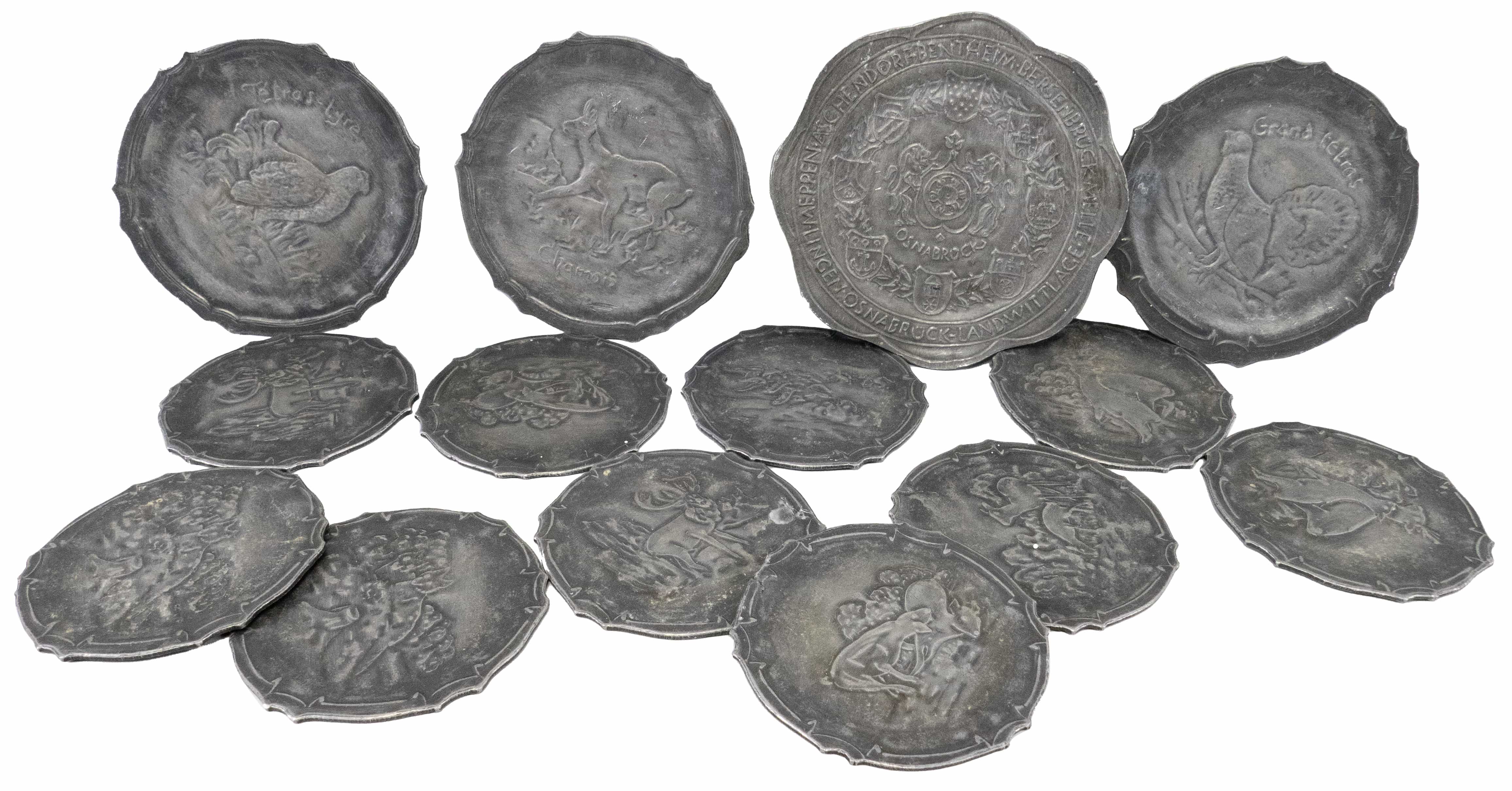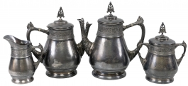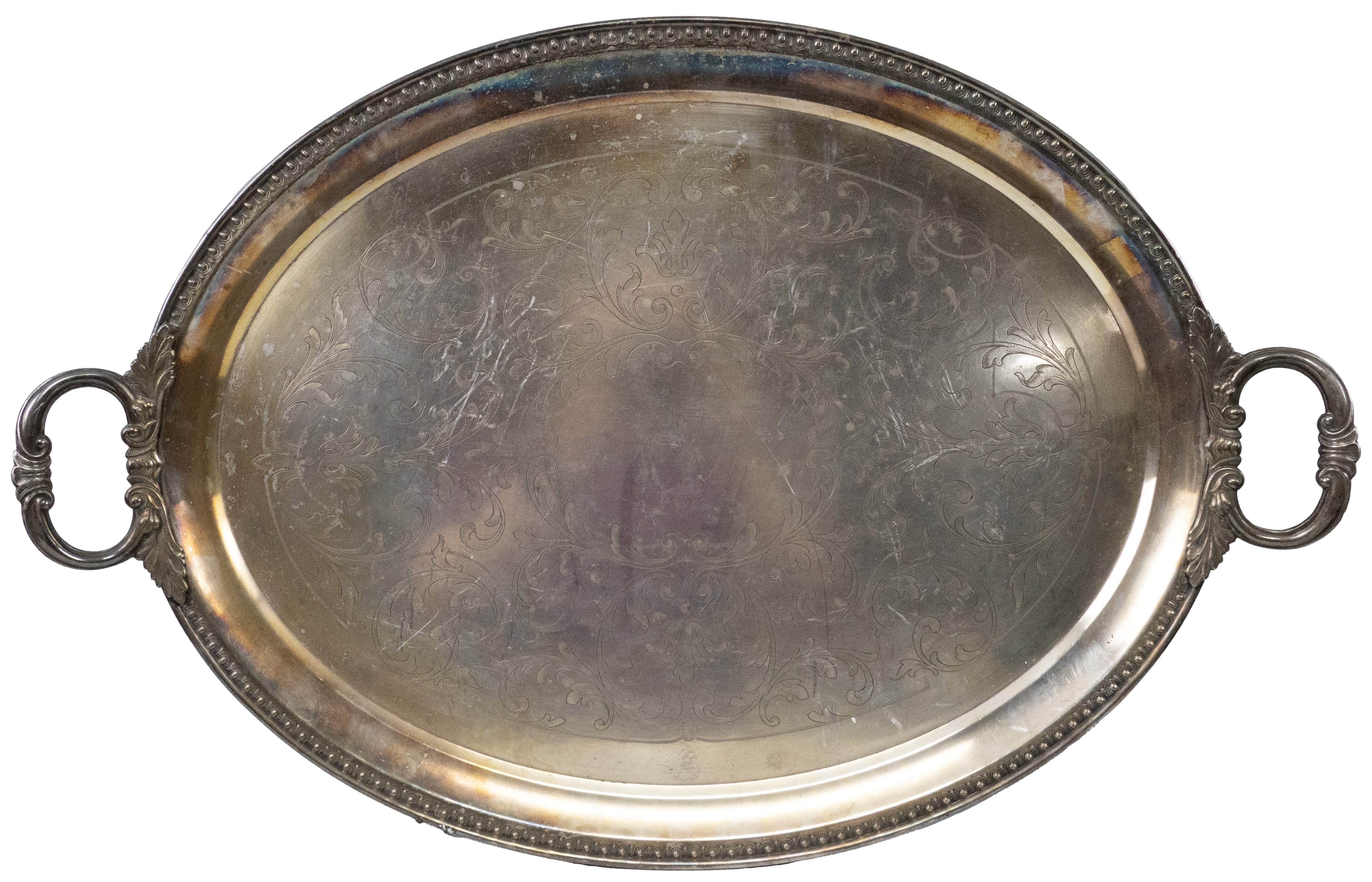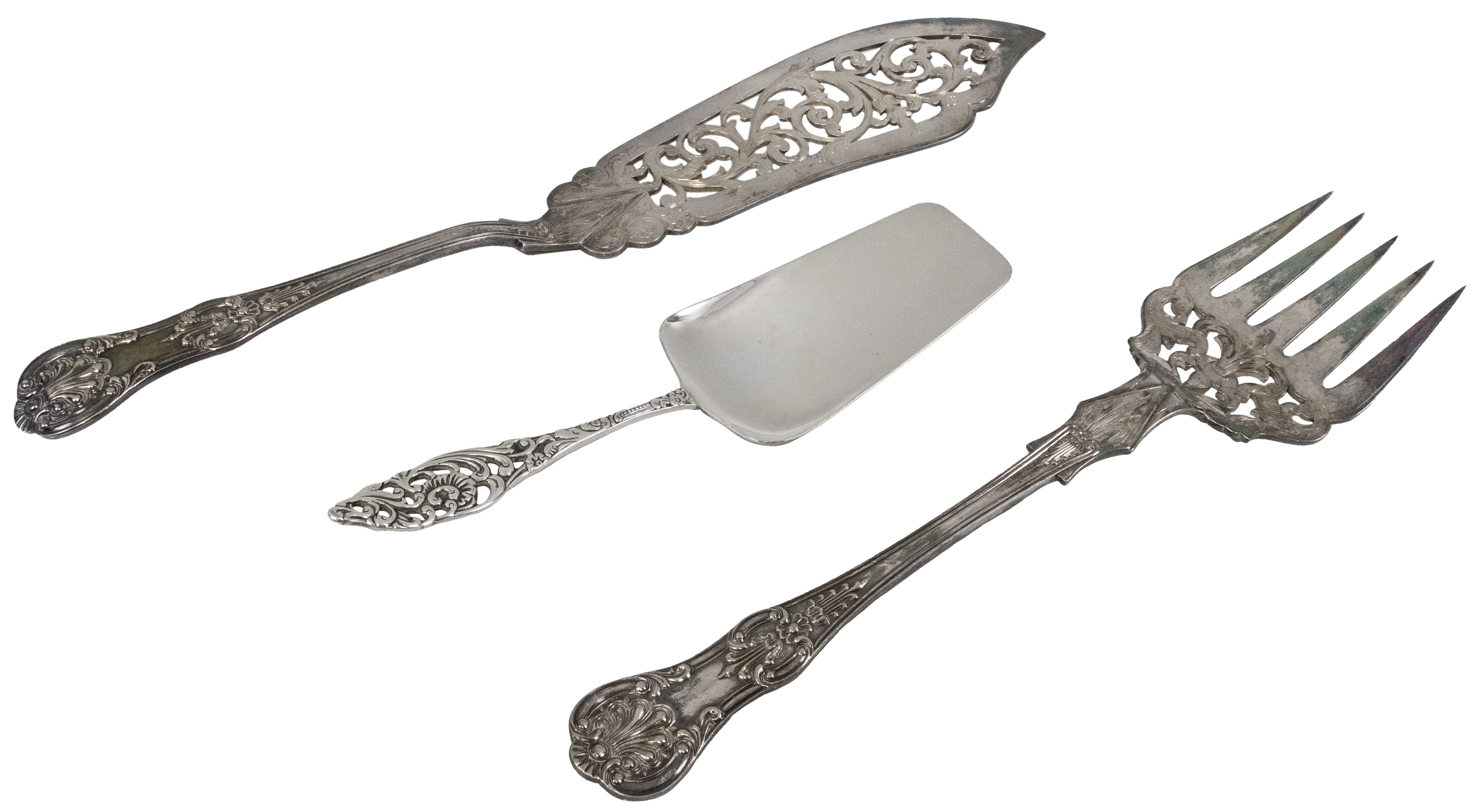 01.13 Trei piese pentru servit, două marcate (cele mari), metal argintat, perioada interbelică
