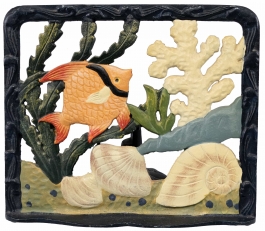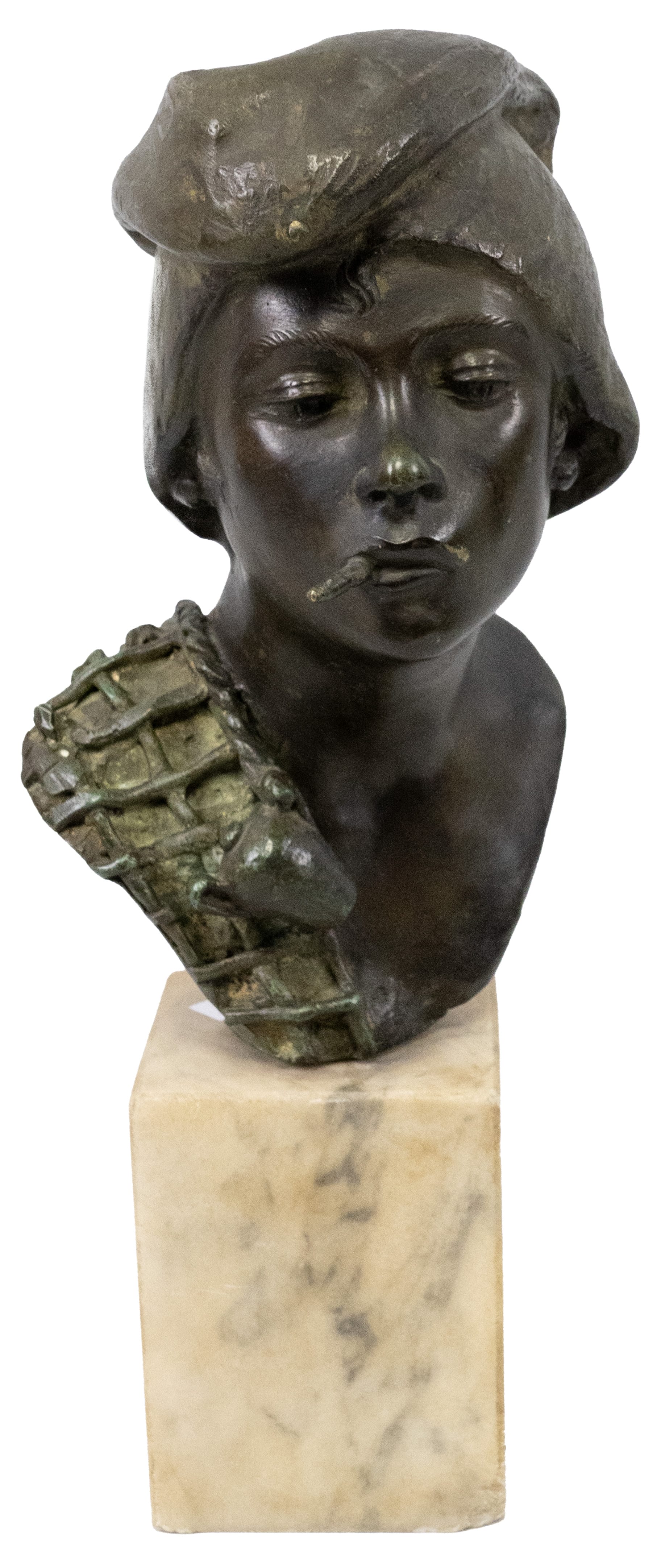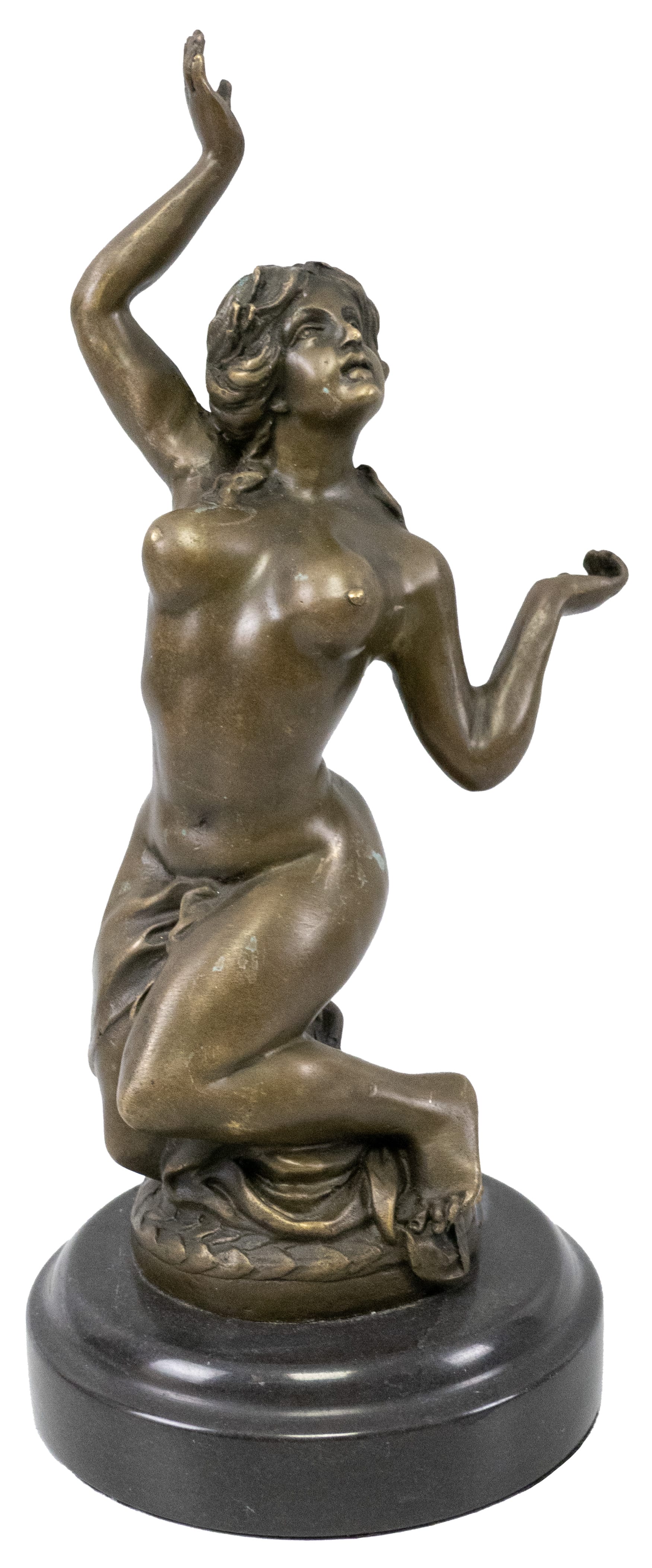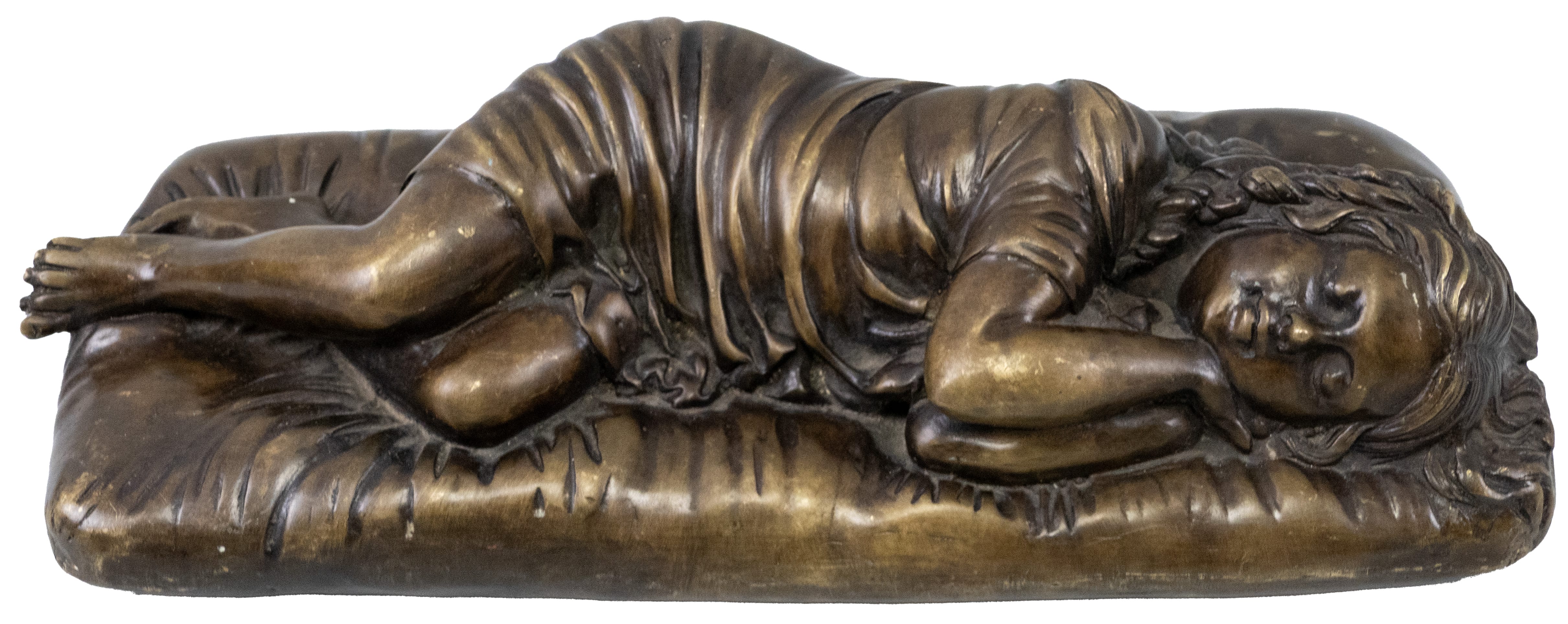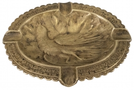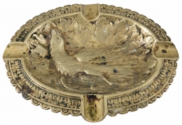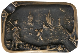 01.38 Scrumieră dreptunghiulară, bronz semnat, decorată în relief cu personaje la țărm, 12x8cm, perioada interbelică