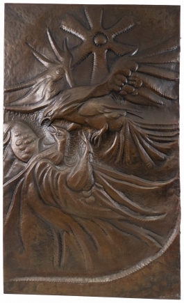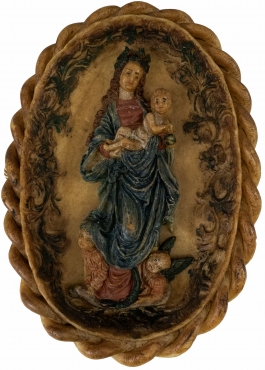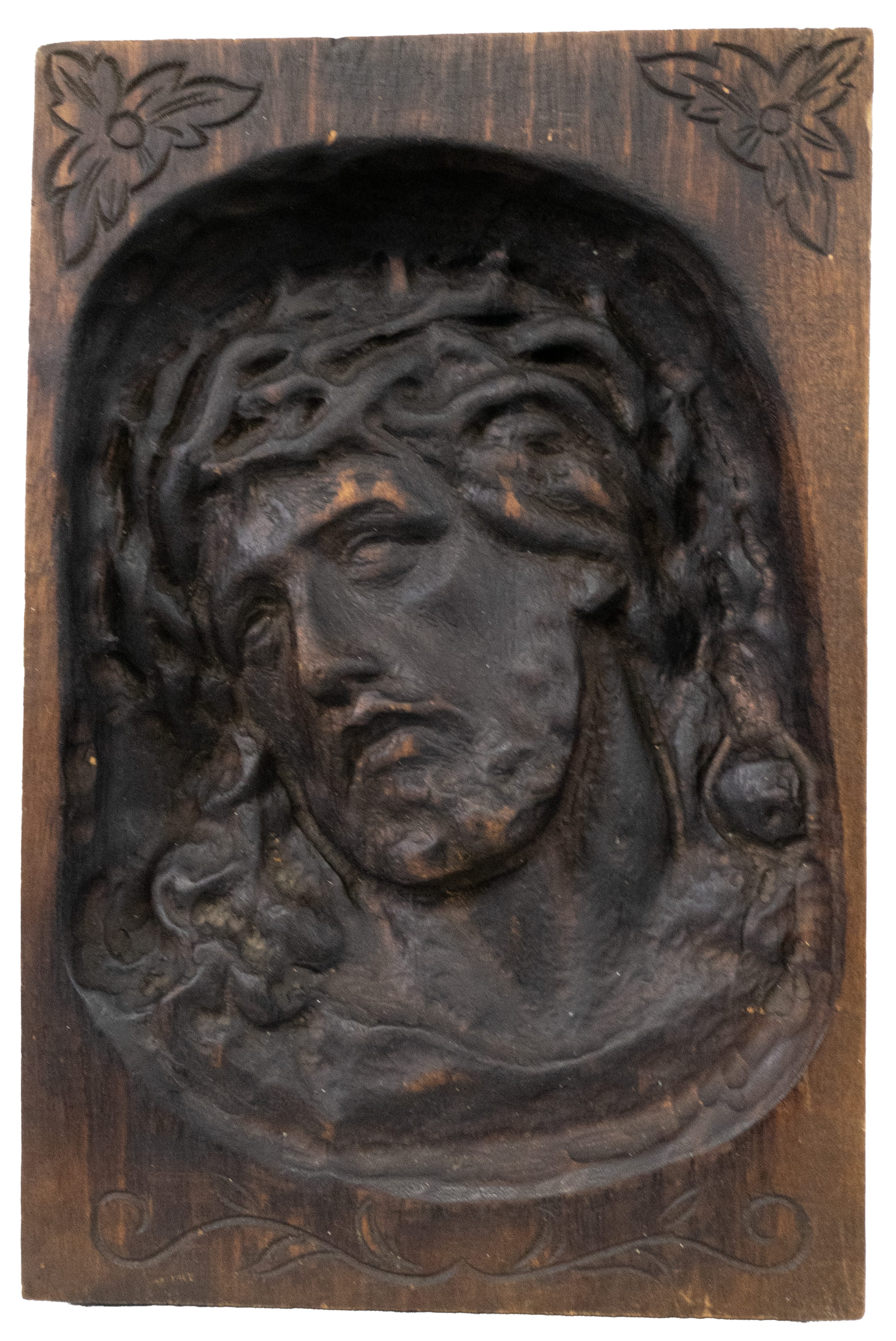 01.34 "Christ"-piesă ornamentală de perete, lemn sculptat, 39x25.5cm, perioada interbelică