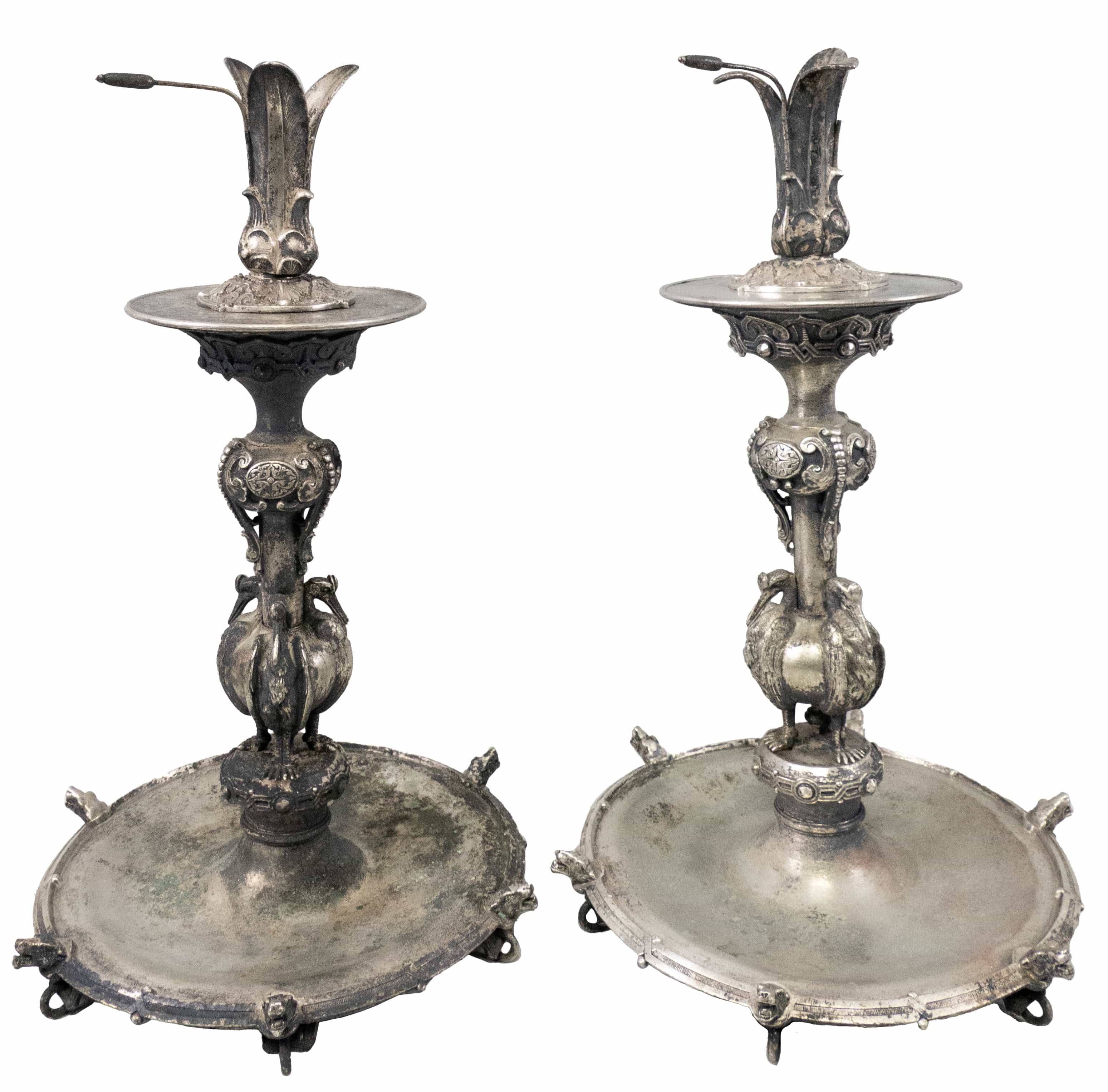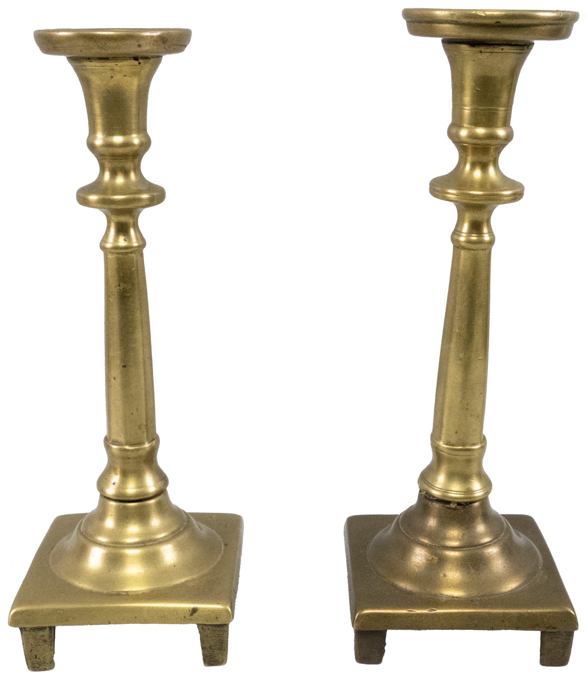 01.40 Pereche de sfeșnice cu o lumină, două segmente asamblate cu filet, bronz, H 27cm, înc.sec.XX
