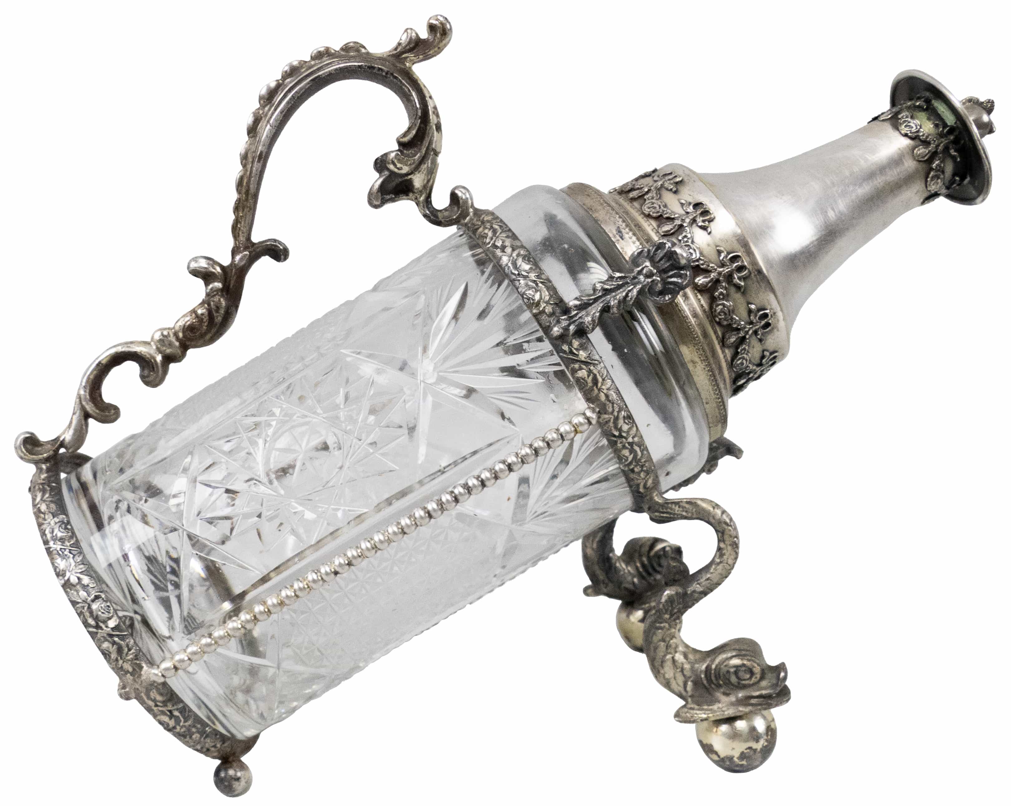 sticlă craclată, metal placat cu argint, marcată, H 25cm, perioada interbelică