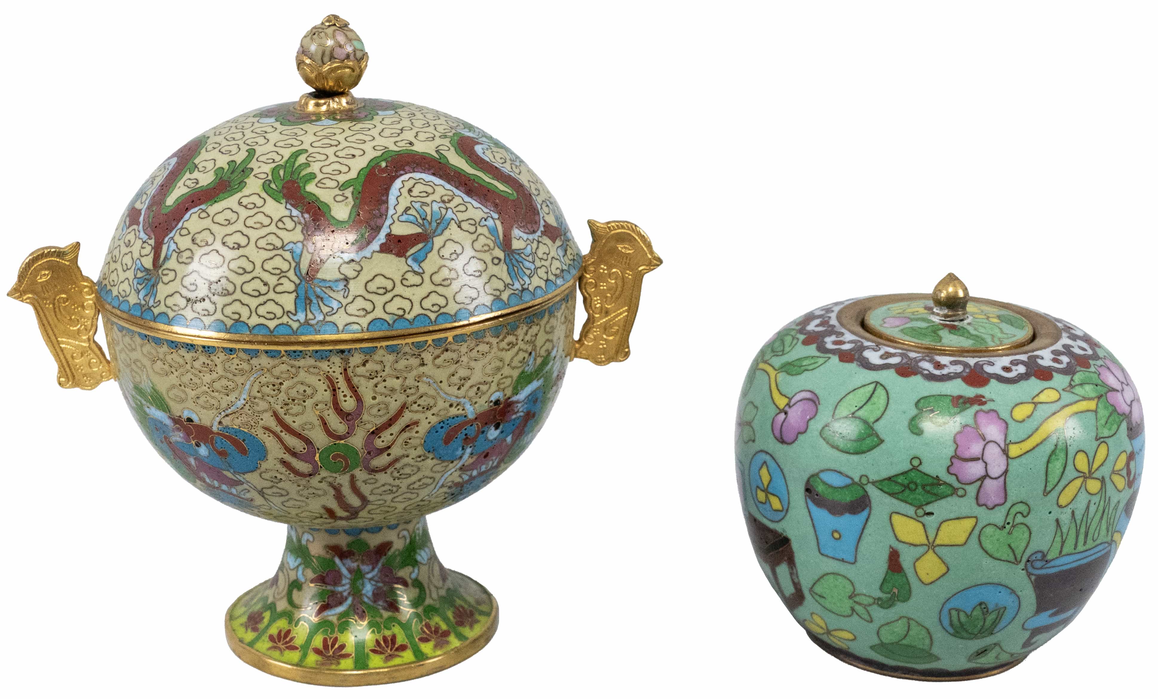 alamă pictată cu email, tehnică Cloisonne, H 8/13.5cm, Extremul Orient, a II-a jum.sec.XX
