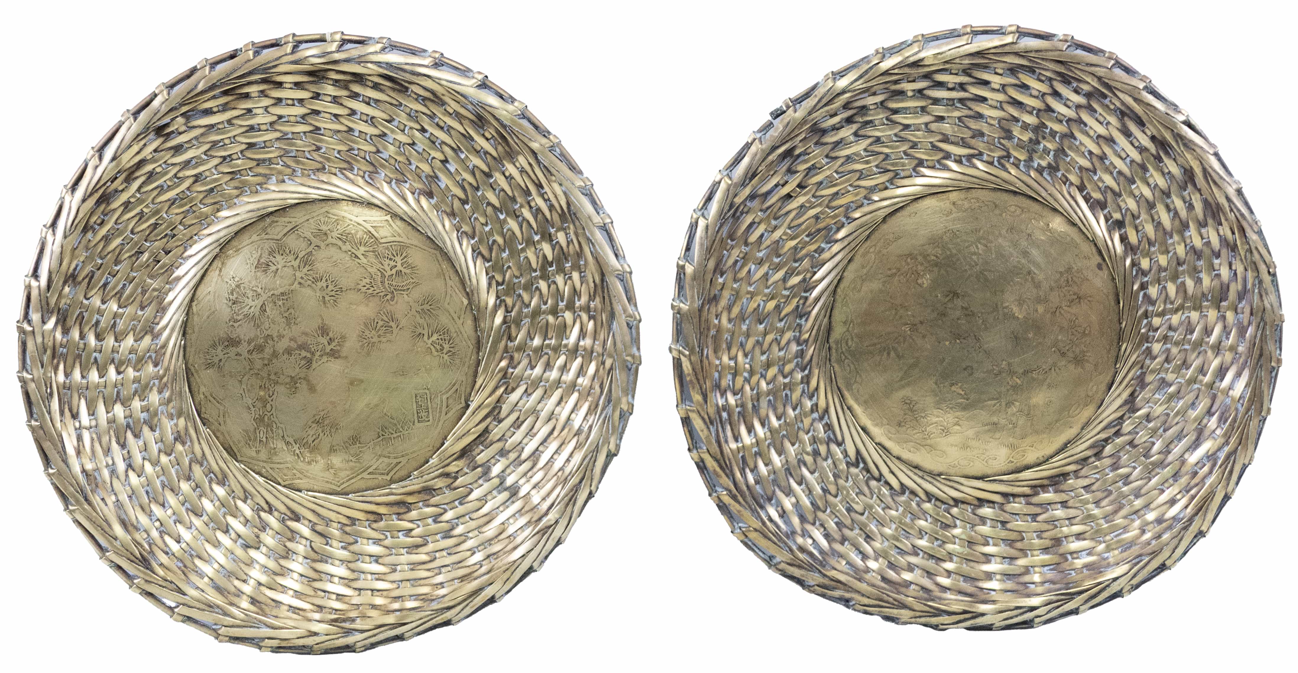 împletitură metalică și metal decorat, marcate, dia.26cm, Extremul Orient, perioada interbelică