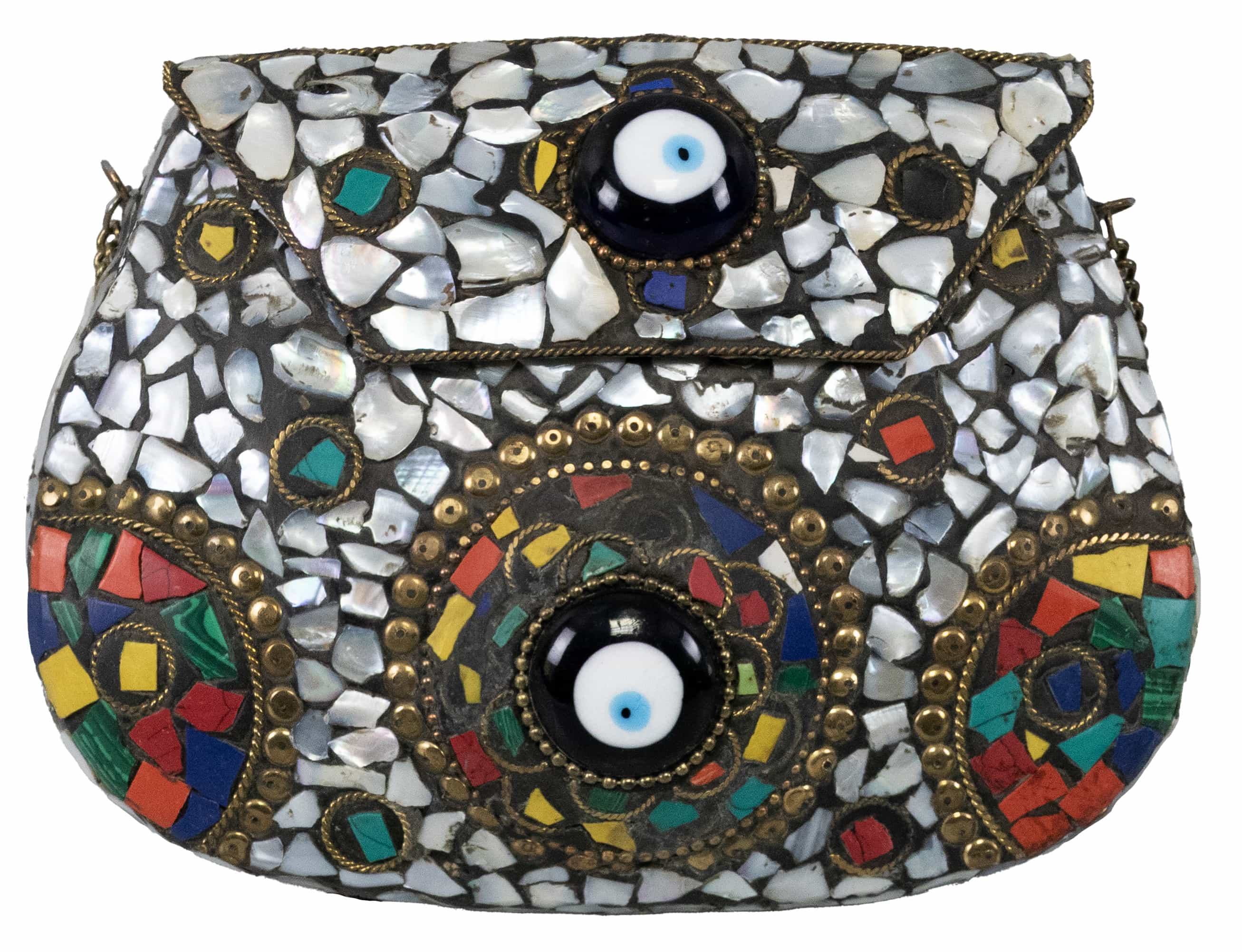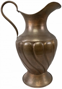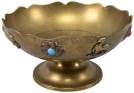 bordură lobată, decorată în relief, cabochoane de sticlă colorată, alamă, dia.17cm, H 9cm, jum.sec.XX