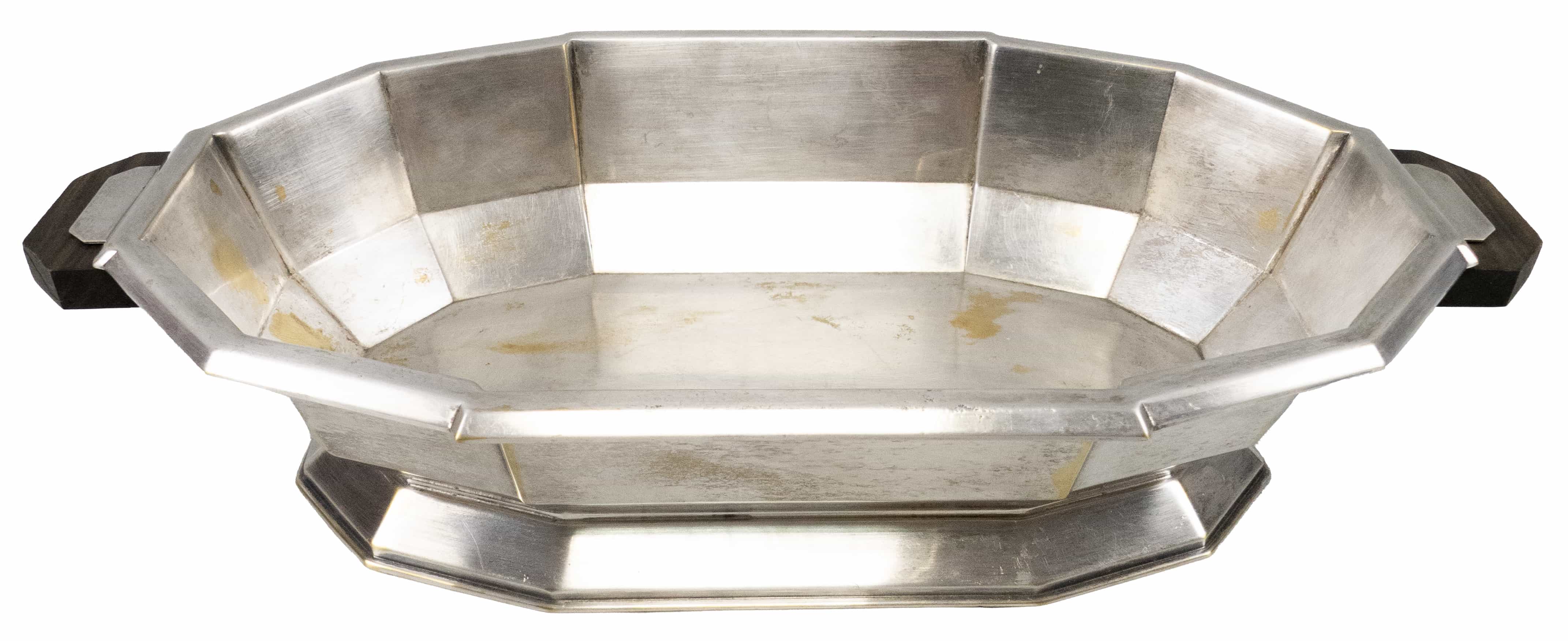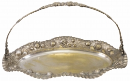 01.16 Fructieră rotundă cu anse, alamă argintată, cu numele designerului Giani, dia.29cm, Italia, jum.sec.XX