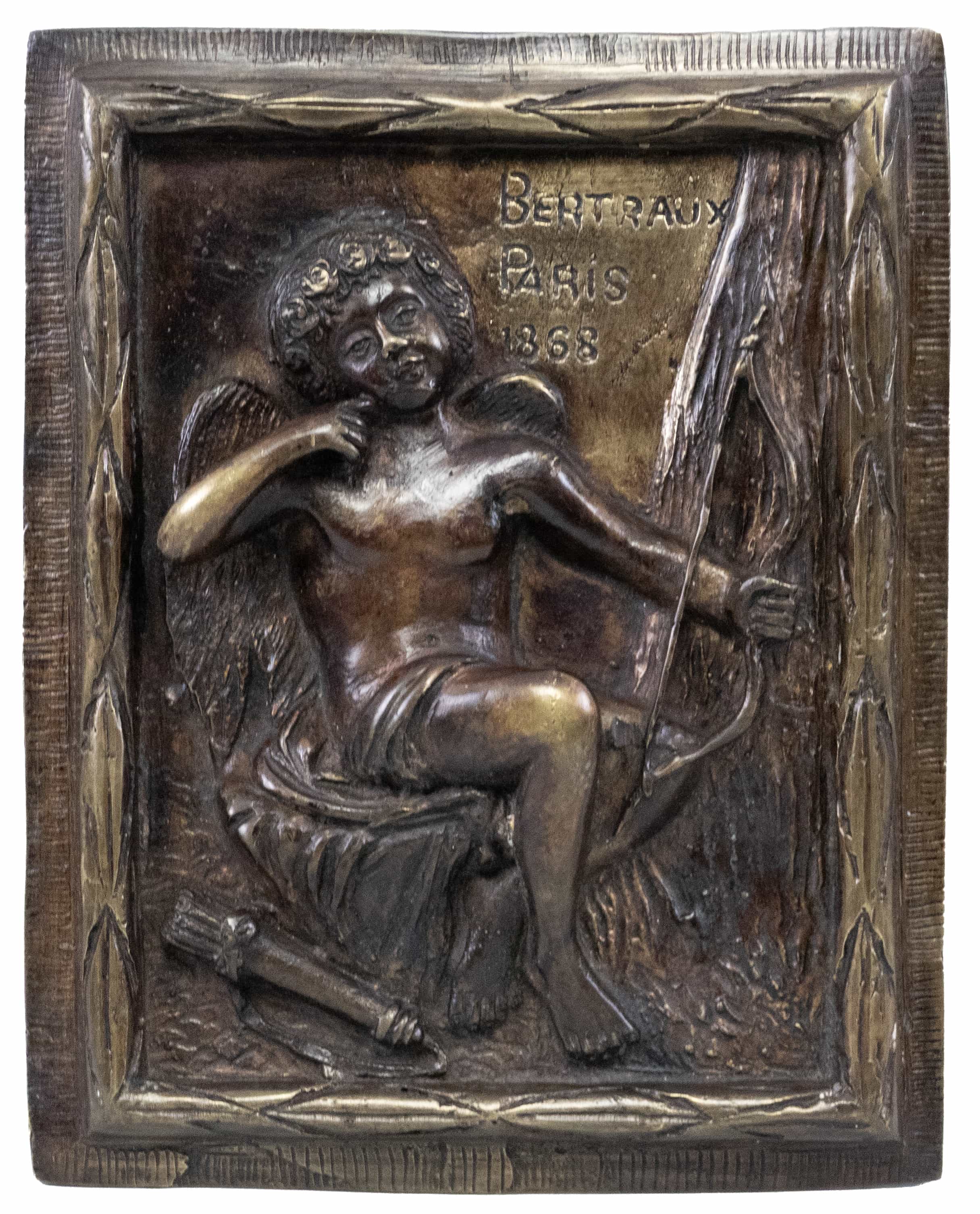 bronz decorat în relief, inscripționat Betraux, Paris 1868, 24.5x19cm