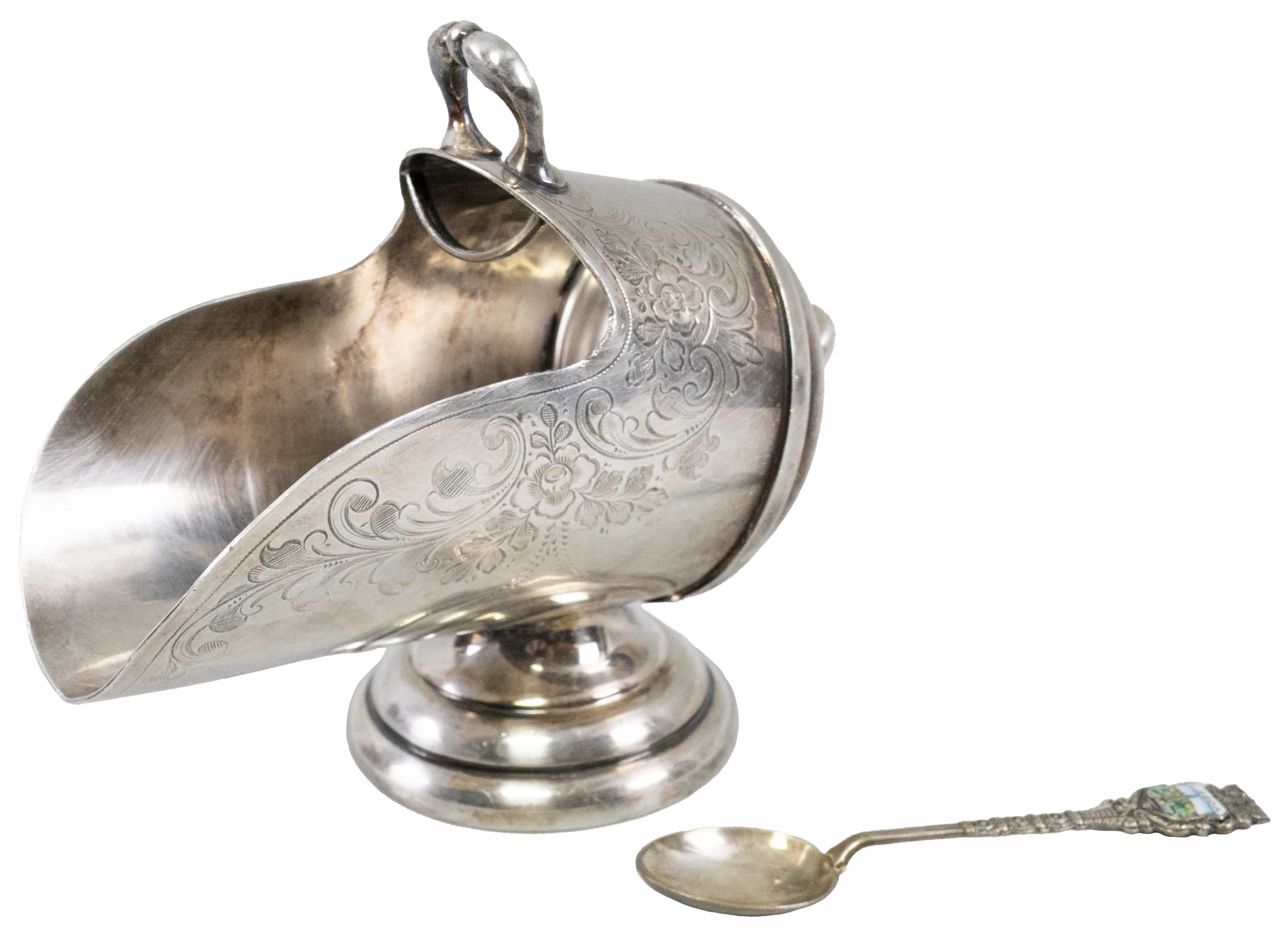 metal argintat, gravat, marcat, H 16cm, înc.sec.XX