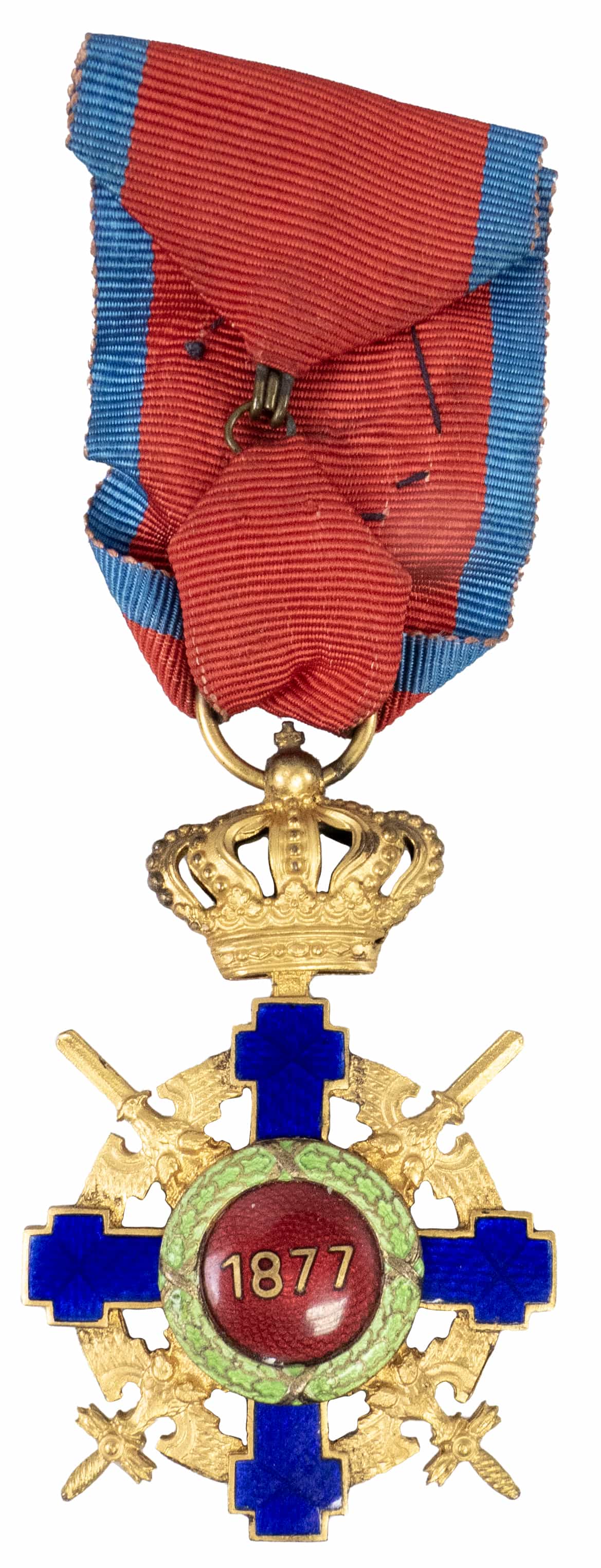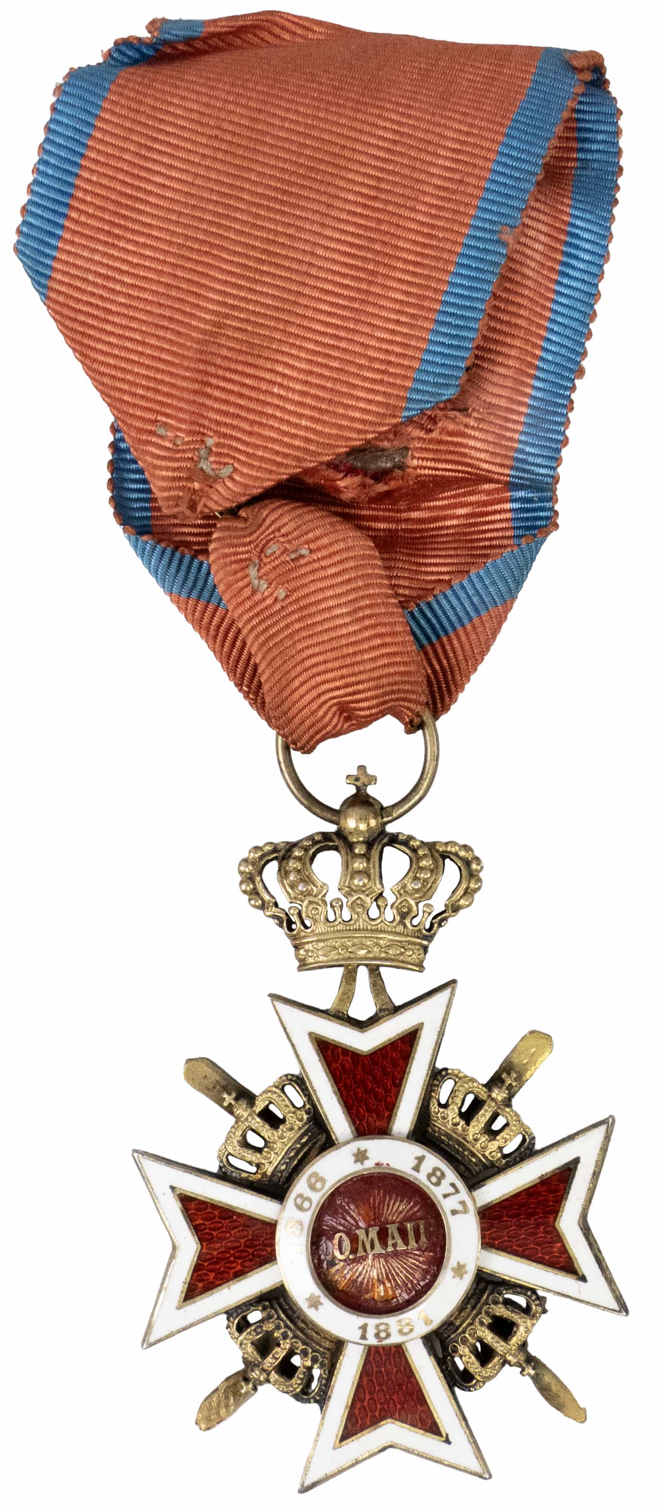 distincție pentru ofițeri superiori, argint 800 marcat, aurit și email, Carol I, foarte mic defect la email