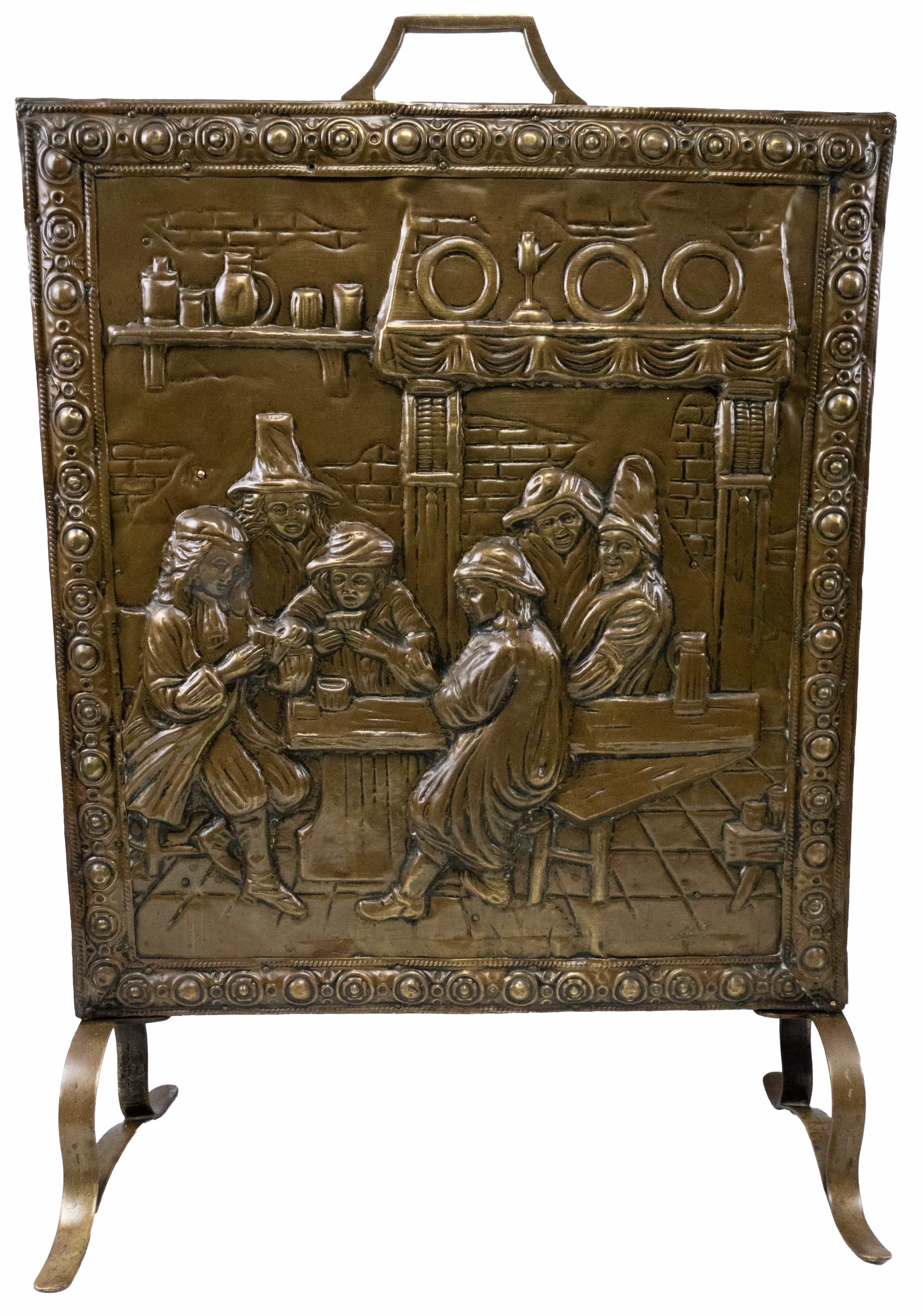 alamă decorată în relief, 65x45cm, înc.sec.XX