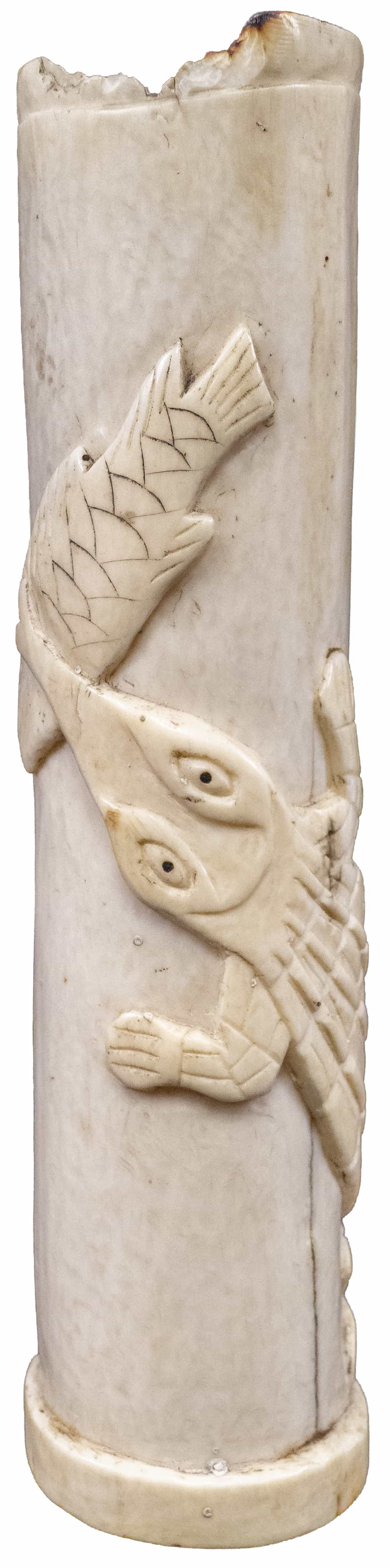 01.21 Solifloră-piesă ornamentală os sculptat, decor cu crocodil, H 17cm, Congo, înc.sec.XX