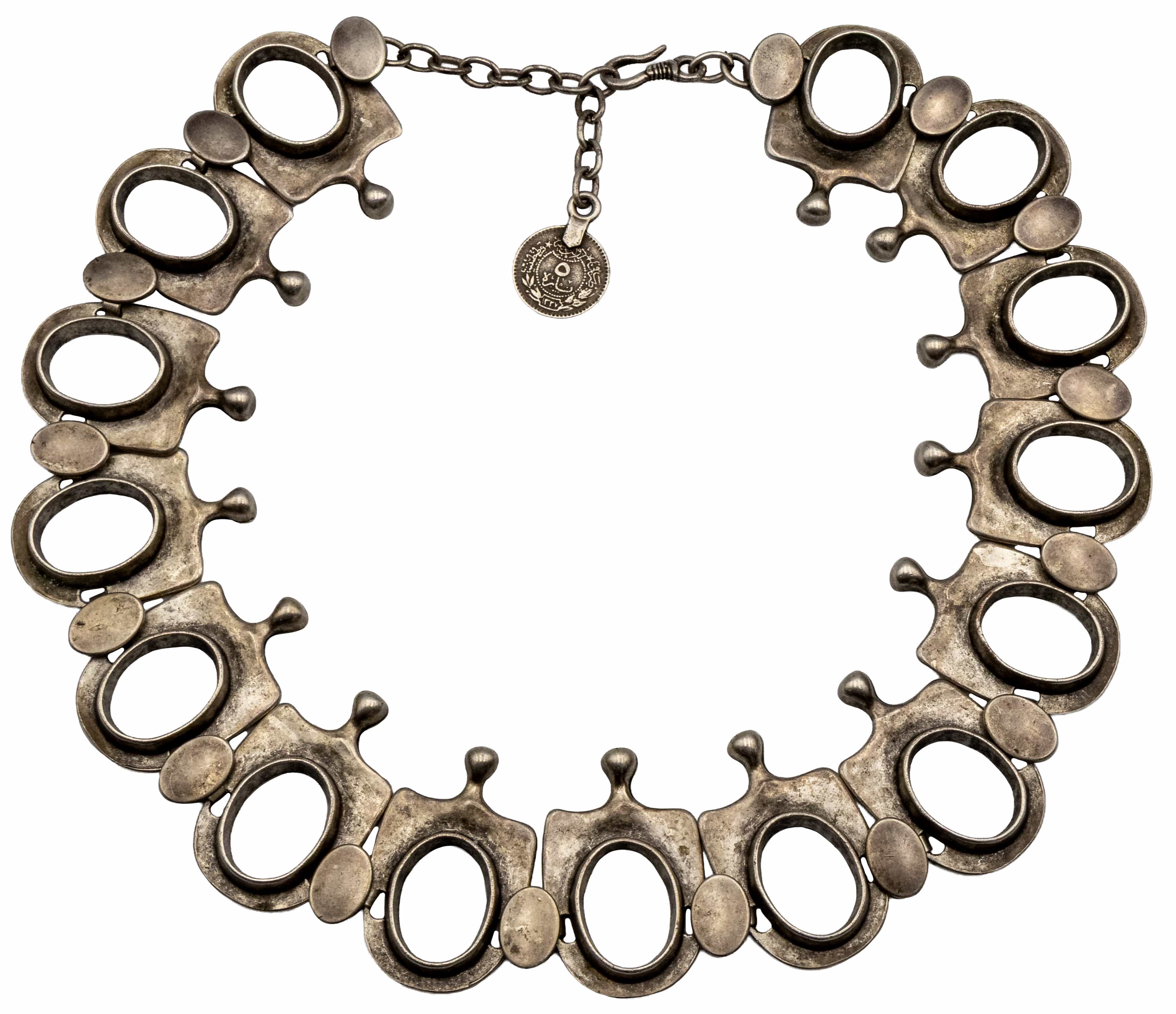 01.29 Colier, segmente de metal argintat și o monedă de 10 parale, datată 1909, Turcia, înc.sec.XX
