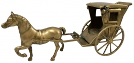01.13 Trăsură cu cal, piesă ornamentală de birou, bronz și alamă, L 34/15.5cm, Anglia, înc.sec.XX