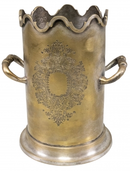 01.09 Suport cu anse pentru sticlă, alamă argintată, marcat, H 19.5cm, perioada interbelică
