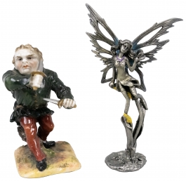 01.30 "Quasimodo" și "Efemeridă", două piese ornamentale de vitrină, porțelan pictat, marcată Napoli și metal traforat, H 9/11.5cm, jum.sec.XX