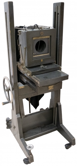 01.34 Aparat foto de studiou, marca Globica, H 130cm, cca.1900, piesă de colecție