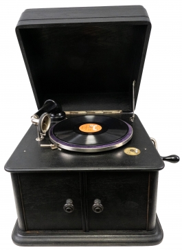 01.35 Patefon, marcat Edelton, cu 18 discuri, înc.sec.XX, stare de funcționare, ace de rezervă, piesă de colecție
