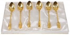 01.03 Șase lingurite, metal placat cu aur, cu poanson de meșter, Franța, jum.sec.XX