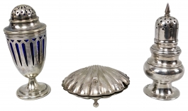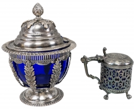 01.10 Două solnițe, vas pentru caviar, marcate, perioada interbelică