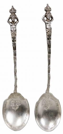 decorate cu cariatide, gravate, argintate, L 25.5cm, perioada interbelică
