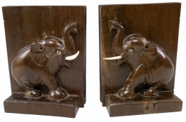 decorate cu elefanți, lemn sculptat, H 16cm, jum.sec.XX